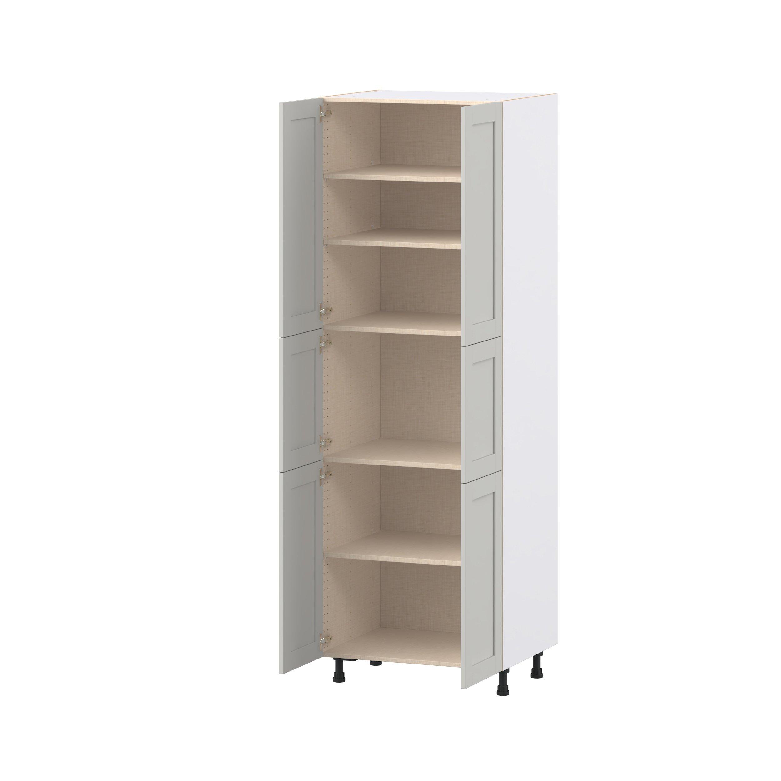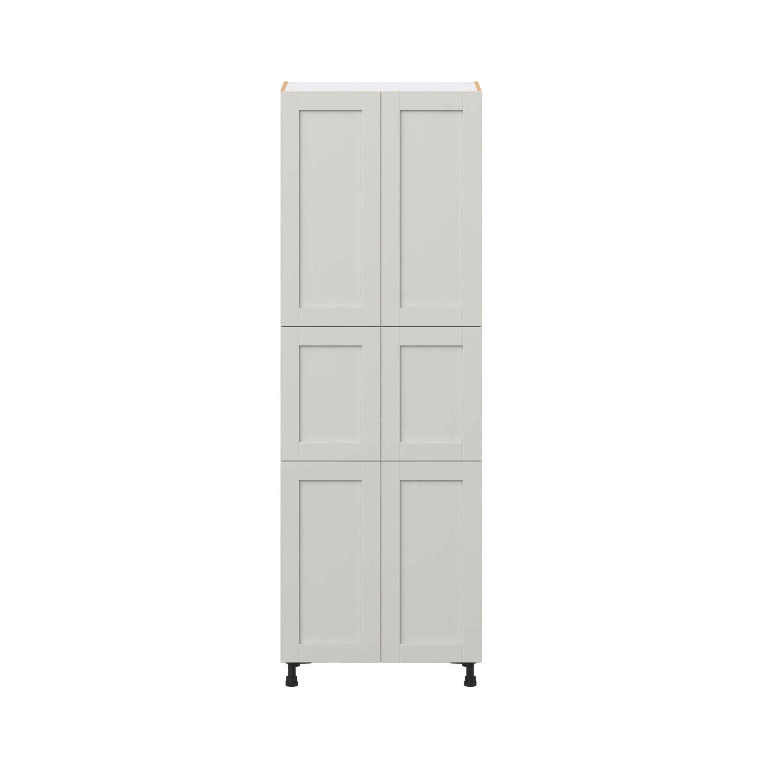 Enhance your home with the timeless beauty of Summerhill classic shaker cabinets, available in fresh bright white and neutral light gray colors. Crafted from one-piece MDF Studio Design Collection Summerhill 30 in. Light Gray Door Pantry Cabinet is designed to resist hairline cracks while the easy-to-clean finish stands up to stains and moisture. Featuring 5-piece doors and dovetail drawer joints, these cabinets offer durability and elegance. This collection combines style with everyday storage solutions.