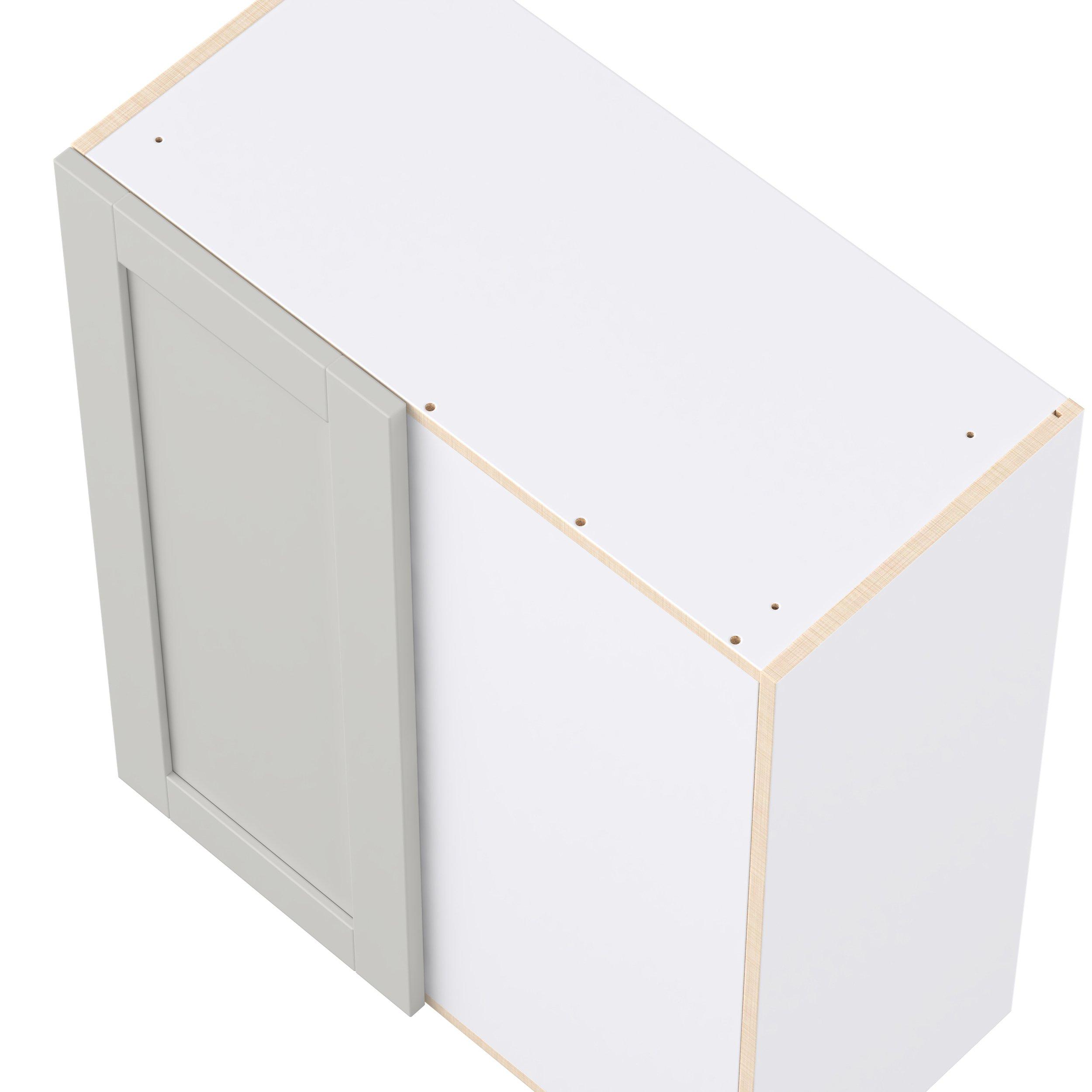 Enhance your home with the timeless beauty of Summerhill classic shaker cabinets, available in fresh bright white and neutral light gray colors. Crafted from one-piece MDF Studio Design Collection Summerhill 30 in. Light Gray Right Blind Corner Wall Cabinet is designed to resist hairline cracks while the easy-to-clean finish stands up to stains and moisture. Featuring 5-piece doors and dovetail drawer joints, these cabinets offer durability and elegance. This collection combines style with everyday storage solutions.