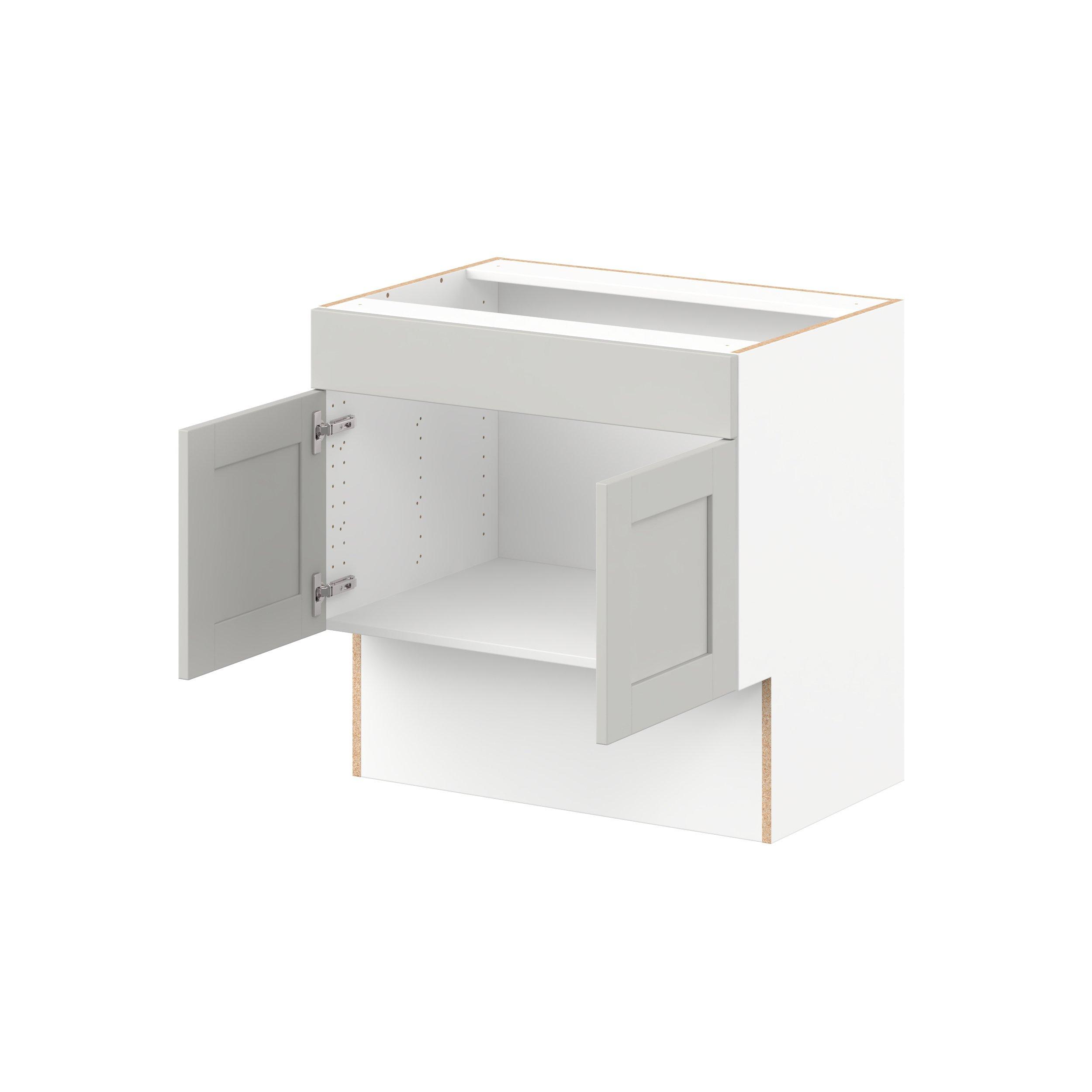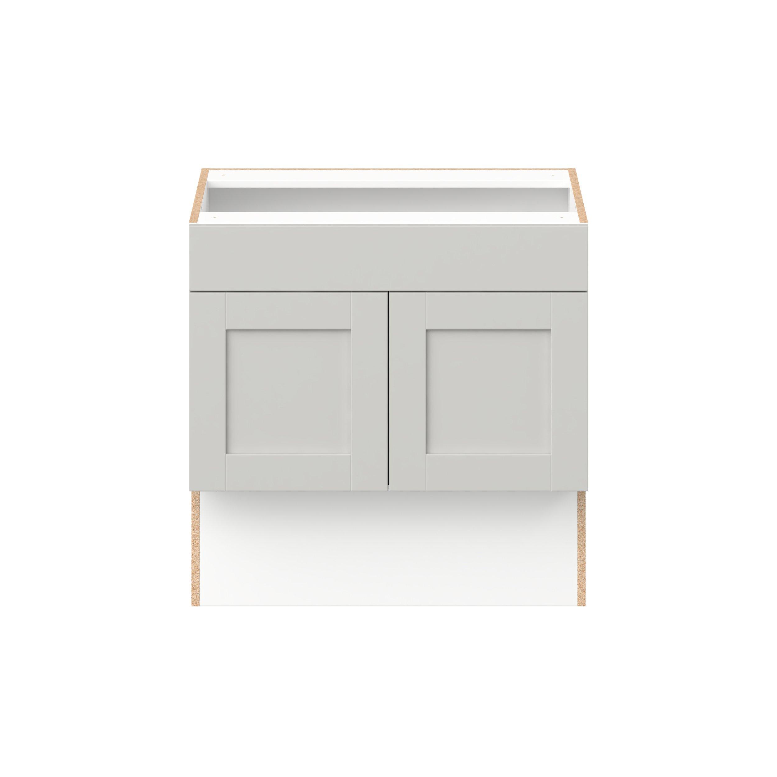 Enhance your home with the timeless beauty of Summerhill classic shaker cabinets, available in fresh bright white and neutral light gray colors. Crafted from one-piece MDF Studio Design Collection Summerhill 30 in. Light Gray Vanity Sink Base Cabinet with False Front is designed to resist hairline cracks while the easy-to-clean finish stands up to stains and moisture. Featuring 5-piece doors and dovetail drawer joints, these cabinets offer durability and elegance. This collection combines style with everyday storage solutions.
