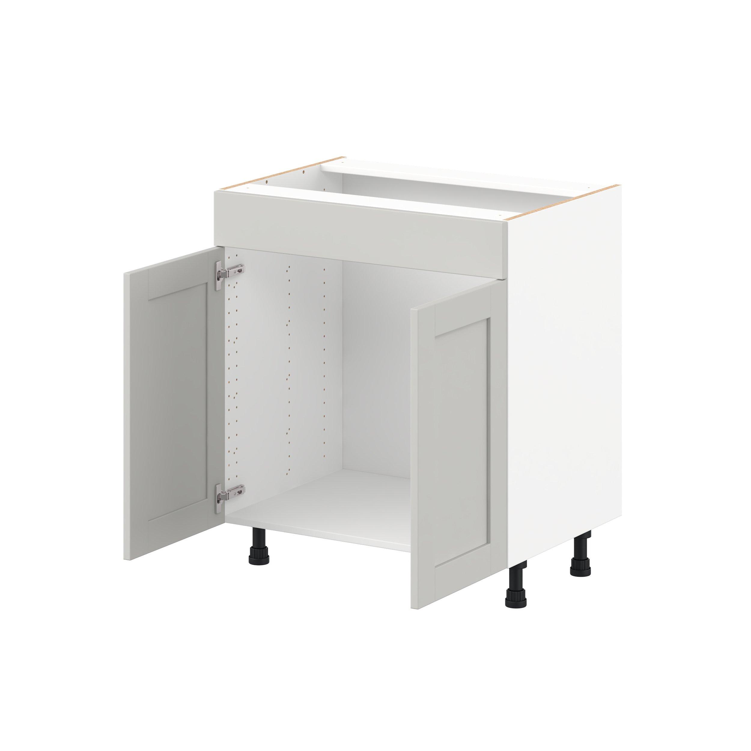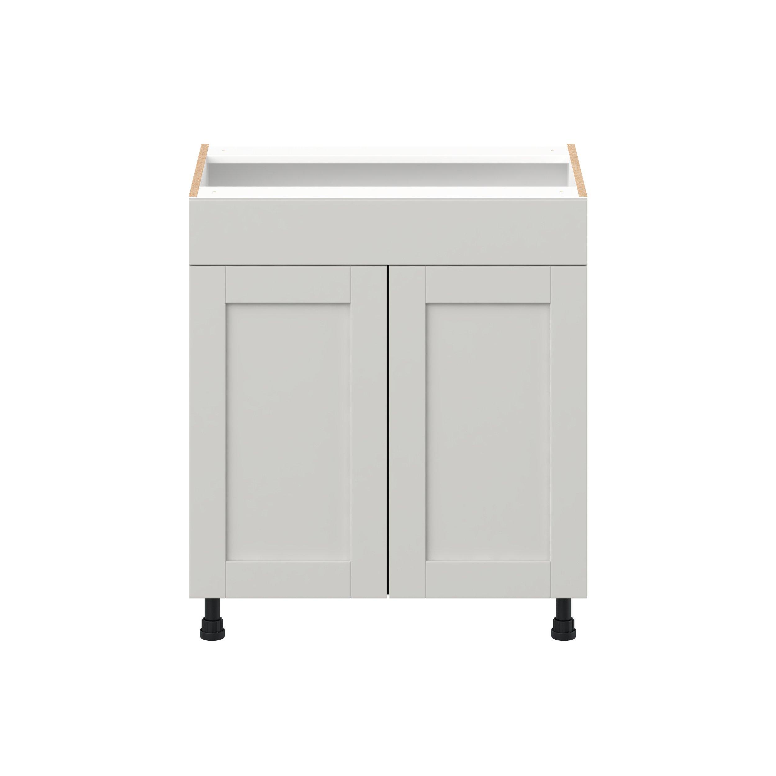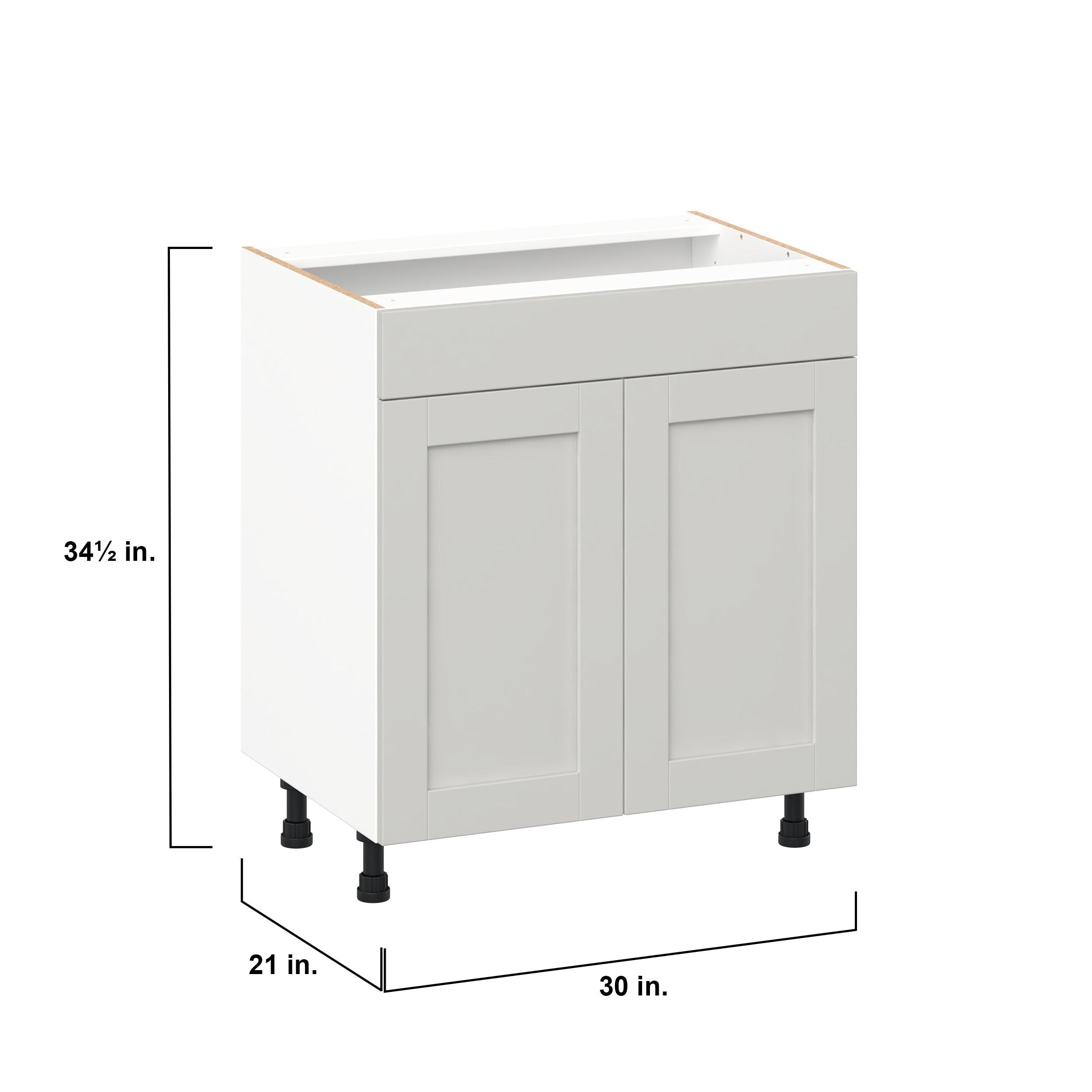 Enhance your home with the timeless beauty of Summerhill classic shaker cabinets, available in fresh bright white and neutral light gray colors. Crafted from one-piece MDF Studio Design Collection Summerhill 30 in. Light Gray Vanity Sink Base Cabinet with False Front is designed to resist hairline cracks while the easy-to-clean finish stands up to stains and moisture. Featuring 5-piece doors and dovetail drawer joints, these cabinets offer durability and elegance. This collection combines style with everyday storage solutions.