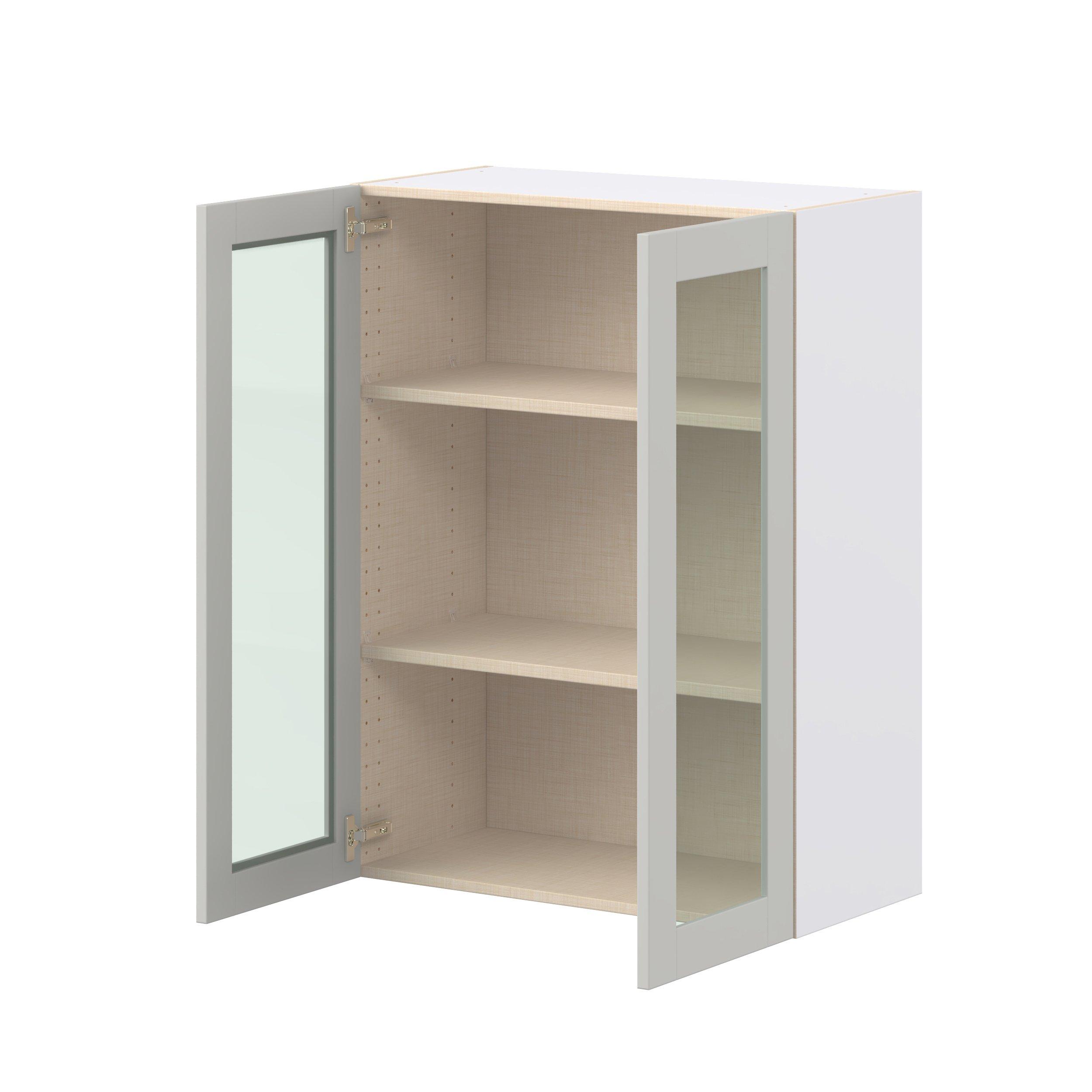 Enhance your home with the timeless beauty of Summerhill classic shaker cabinets, available in fresh bright white and neutral light gray colors. Crafted from one-piece MDF Studio Design Collection Summerhill 30 in. Light Gray Wall Cabinet with Glass Door is designed to resist hairline cracks while the easy-to-clean finish stands up to stains and moisture. Featuring 5-piece doors and dovetail drawer joints, these cabinets offer durability and elegance. This collection combines style with everyday storage solutions.