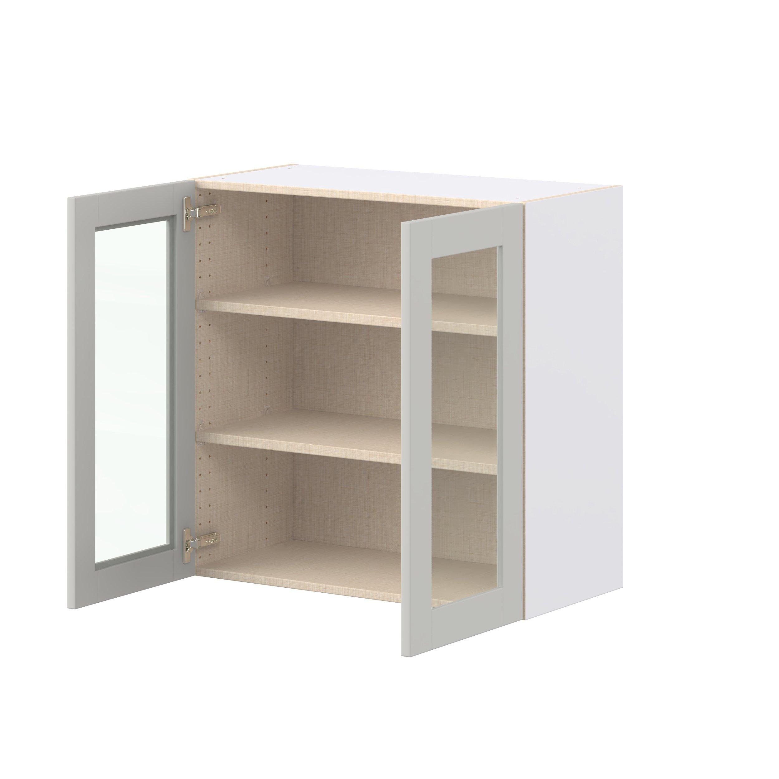 Enhance your home with the timeless beauty of Summerhill classic shaker cabinets, available in fresh bright white and neutral light gray colors. Crafted from one-piece MDF Studio Design Collection Summerhill 30 in. Light Gray Wall Cabinet with Glass Door is designed to resist hairline cracks while the easy-to-clean finish stands up to stains and moisture. Featuring 5-piece doors and dovetail drawer joints, these cabinets offer durability and elegance. This collection combines style with everyday storage solutions.