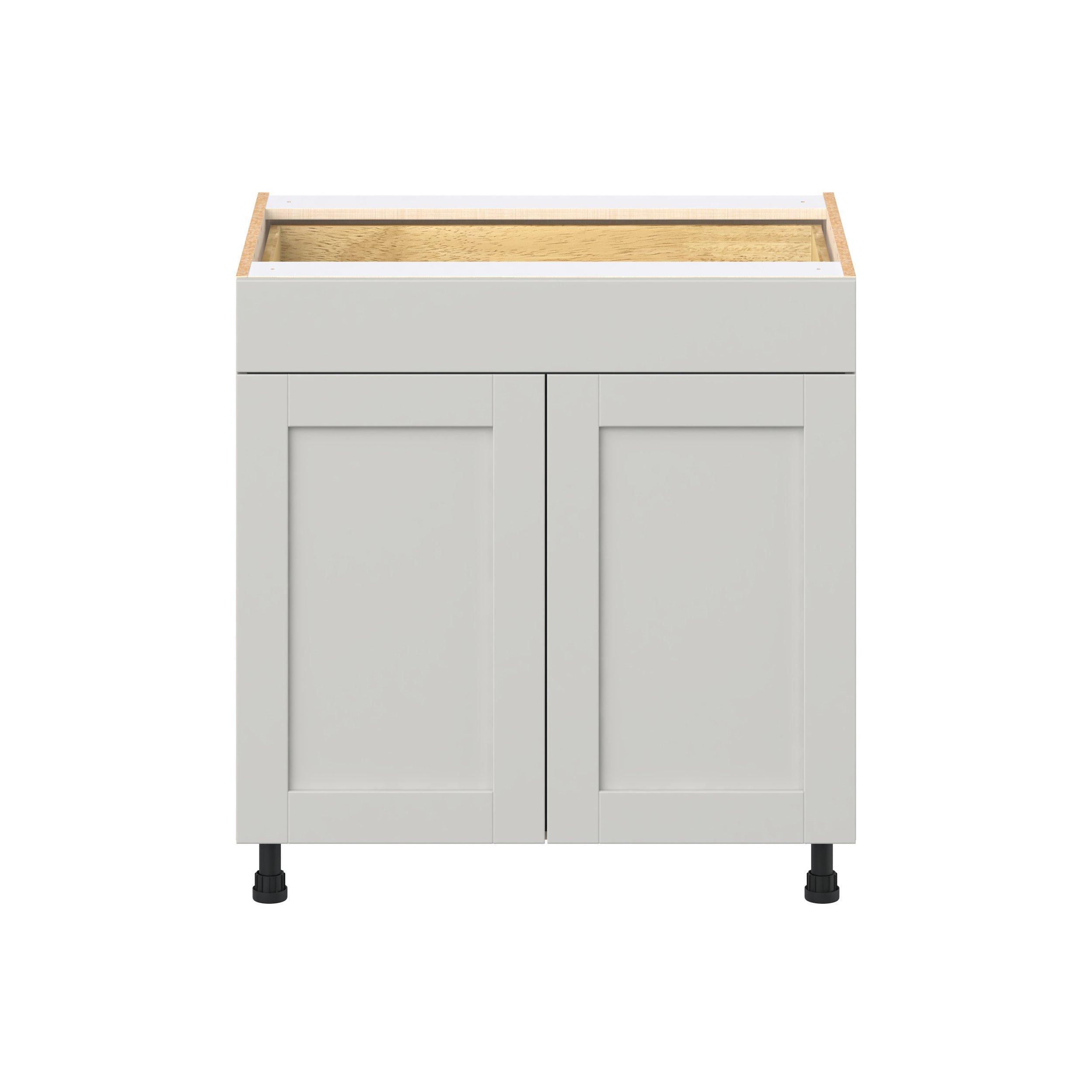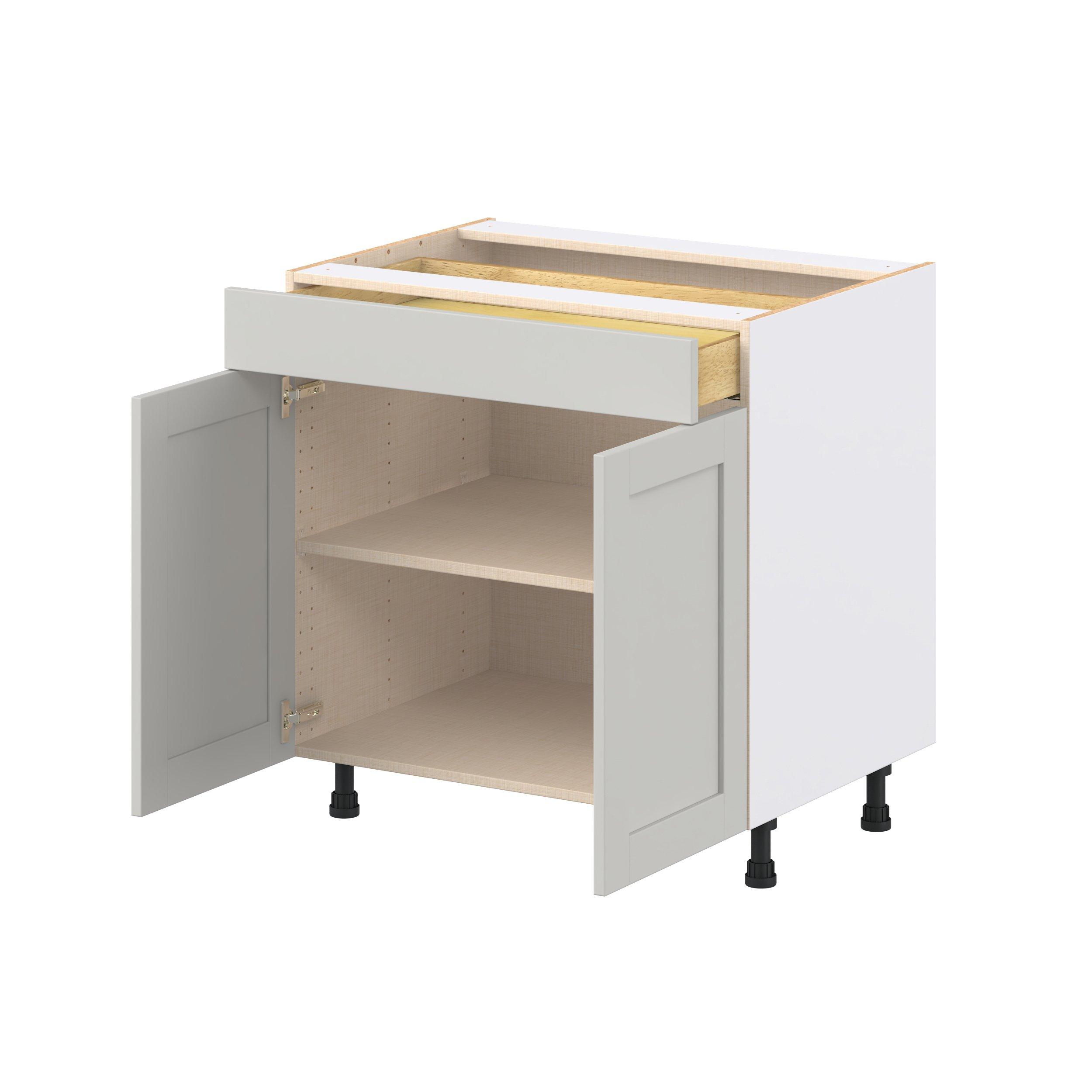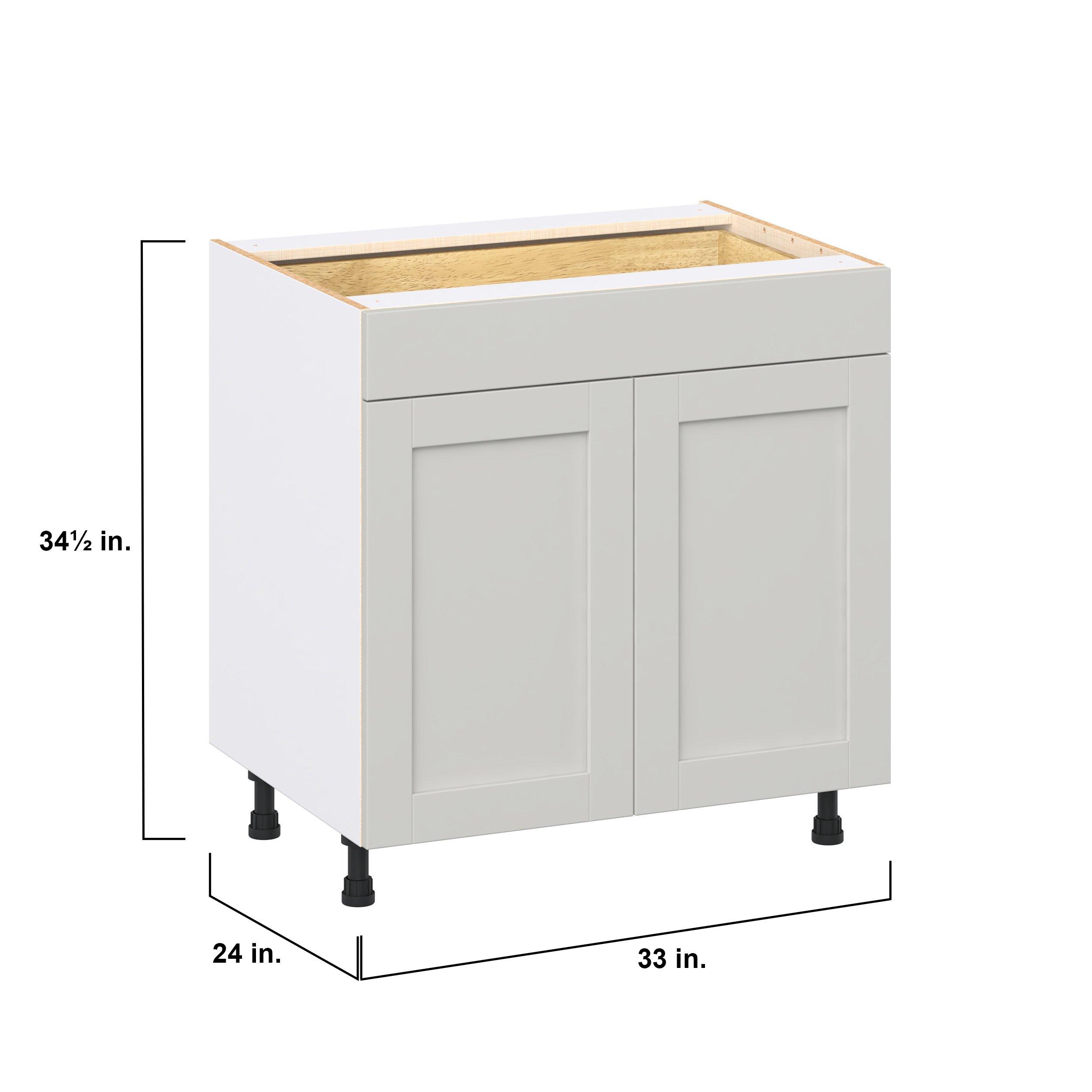 Enhance your home with the timeless beauty of Summerhill classic shaker cabinets, available in fresh bright white and neutral light gray colors. Crafted from one-piece MDF Studio Design Collection Summerhill 33 in. Light Gray Door and Drawer Base Cabinet is designed to resist hairline cracks while the easy-to-clean finish stands up to stains and moisture. Featuring 5-piece doors and dovetail drawer joints, these cabinets offer durability and elegance. This collection combines style with everyday storage solutions.