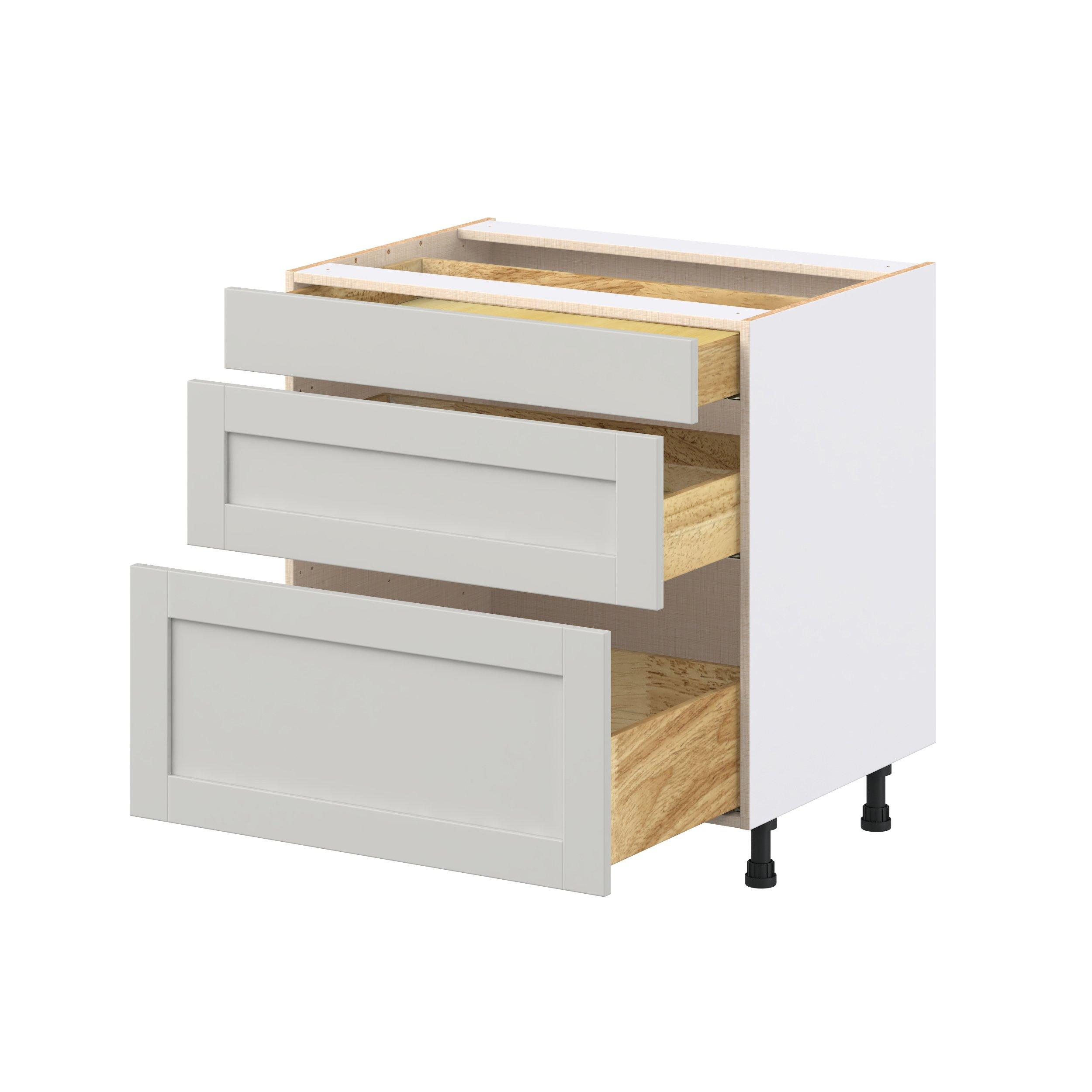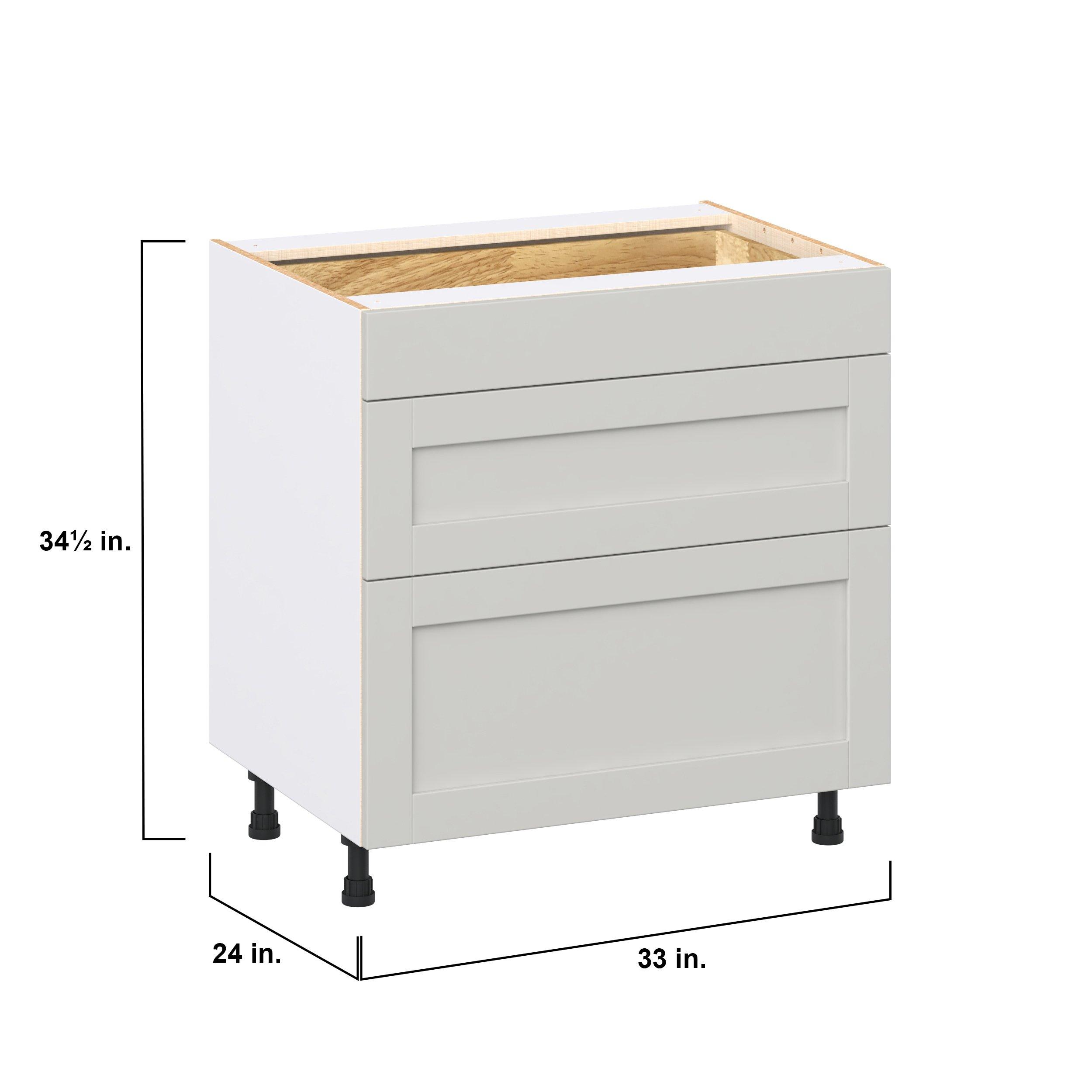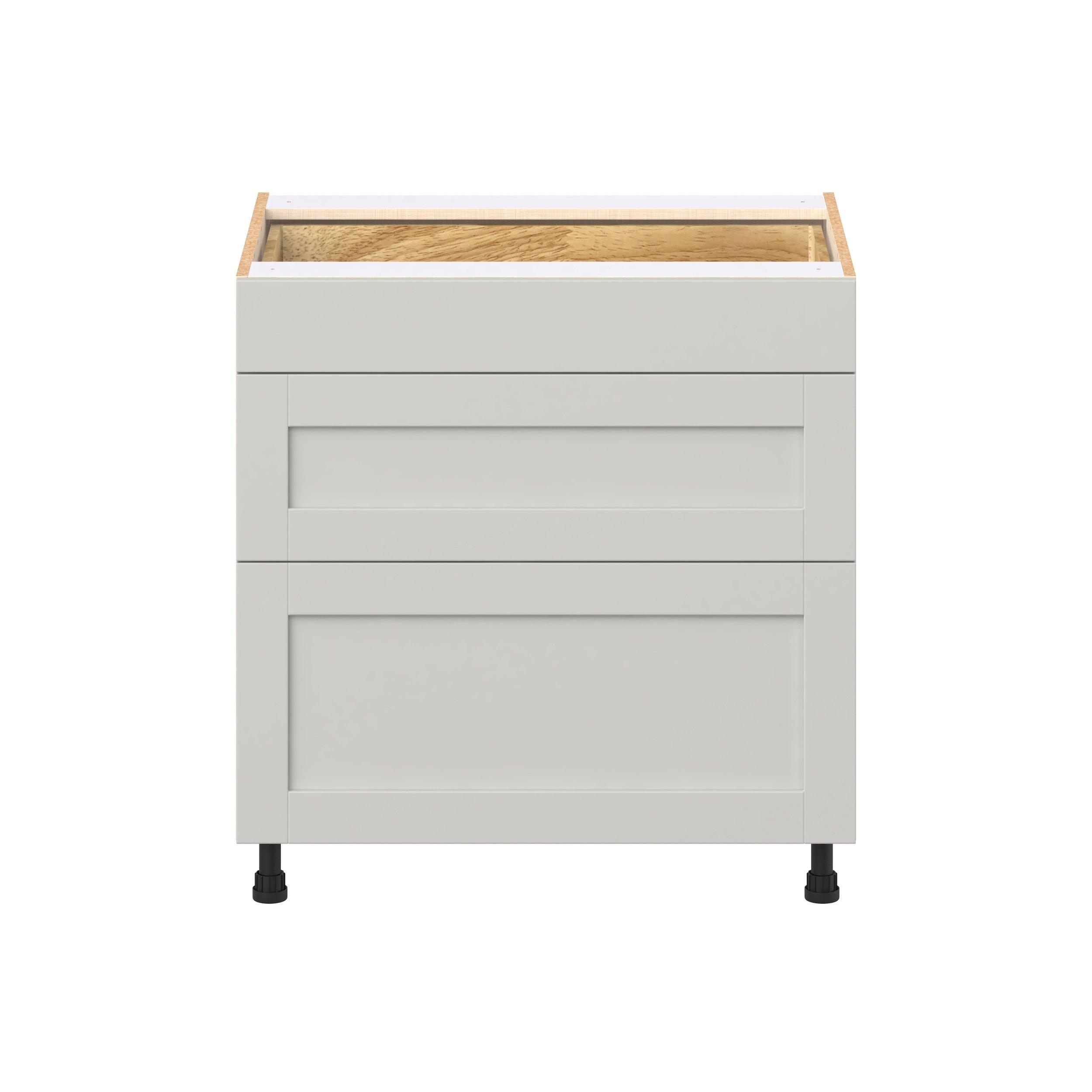 Enhance your home with the timeless beauty of Summerhill classic shaker cabinets, available in fresh bright white and neutral light gray colors. Crafted from one-piece MDF Studio Design Collection Summerhill 33 in. Light Gray Drawer Base Cabinet is designed to resist hairline cracks while the easy-to-clean finish stands up to stains and moisture. Featuring 5-piece doors and dovetail drawer joints, these cabinets offer durability and elegance. This collection combines style with everyday storage solutions.