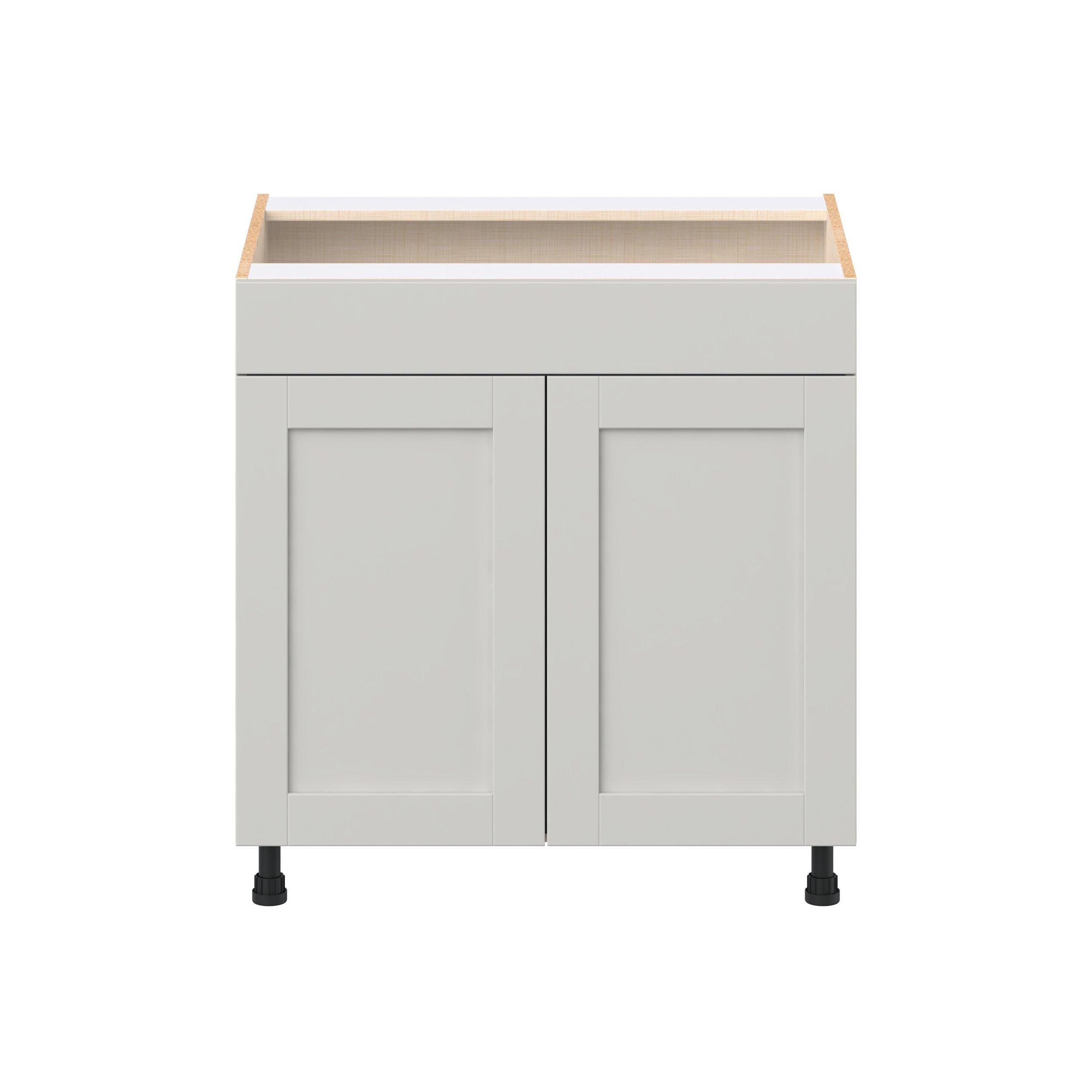 Enhance your home with the timeless beauty of Summerhill classic shaker cabinets, available in fresh bright white and neutral light gray colors. Crafted from one-piece MDF Studio Design Collection Summerhill 33 in. Light Gray Sink Base Cabinet with False Front is designed to resist hairline cracks while the easy-to-clean finish stands up to stains and moisture. Featuring 5-piece doors and dovetail drawer joints, these cabinets offer durability and elegance. This collection combines style with everyday storage solutions.
