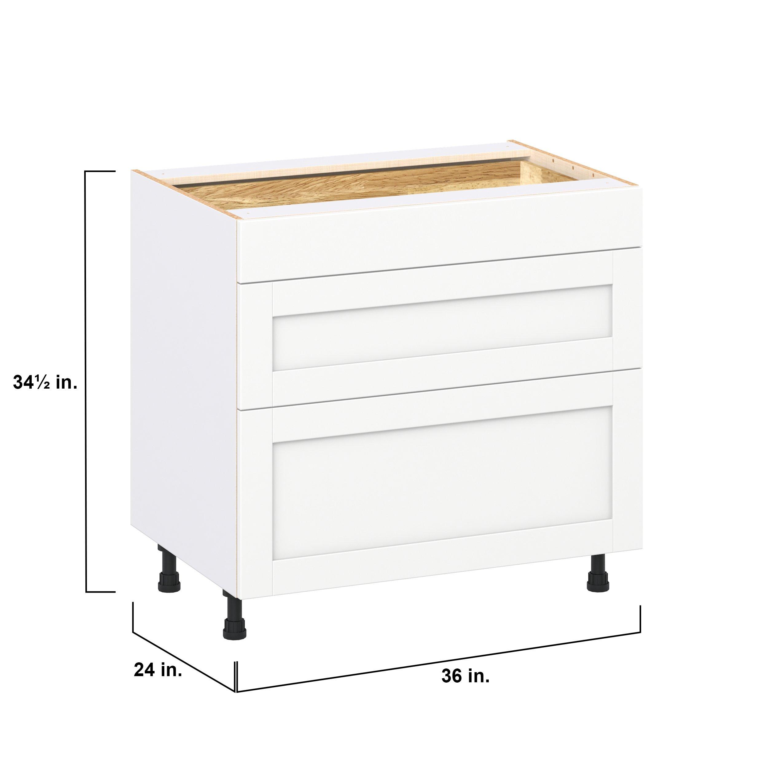 Enhance your home with the timeless beauty of Summerhill classic shaker cabinets, available in fresh bright white and neutral light gray colors. Crafted from one-piece MDF Studio Design Collection Summerhill 36 in. Bright White Drawer Base Cabinet is designed to resist hairline cracks while the easy-to-clean finish stands up to stains and moisture. Featuring 5-piece doors and dovetail drawer joints, these cabinets offer durability and elegance. This collection combines style with everyday storage solutions.