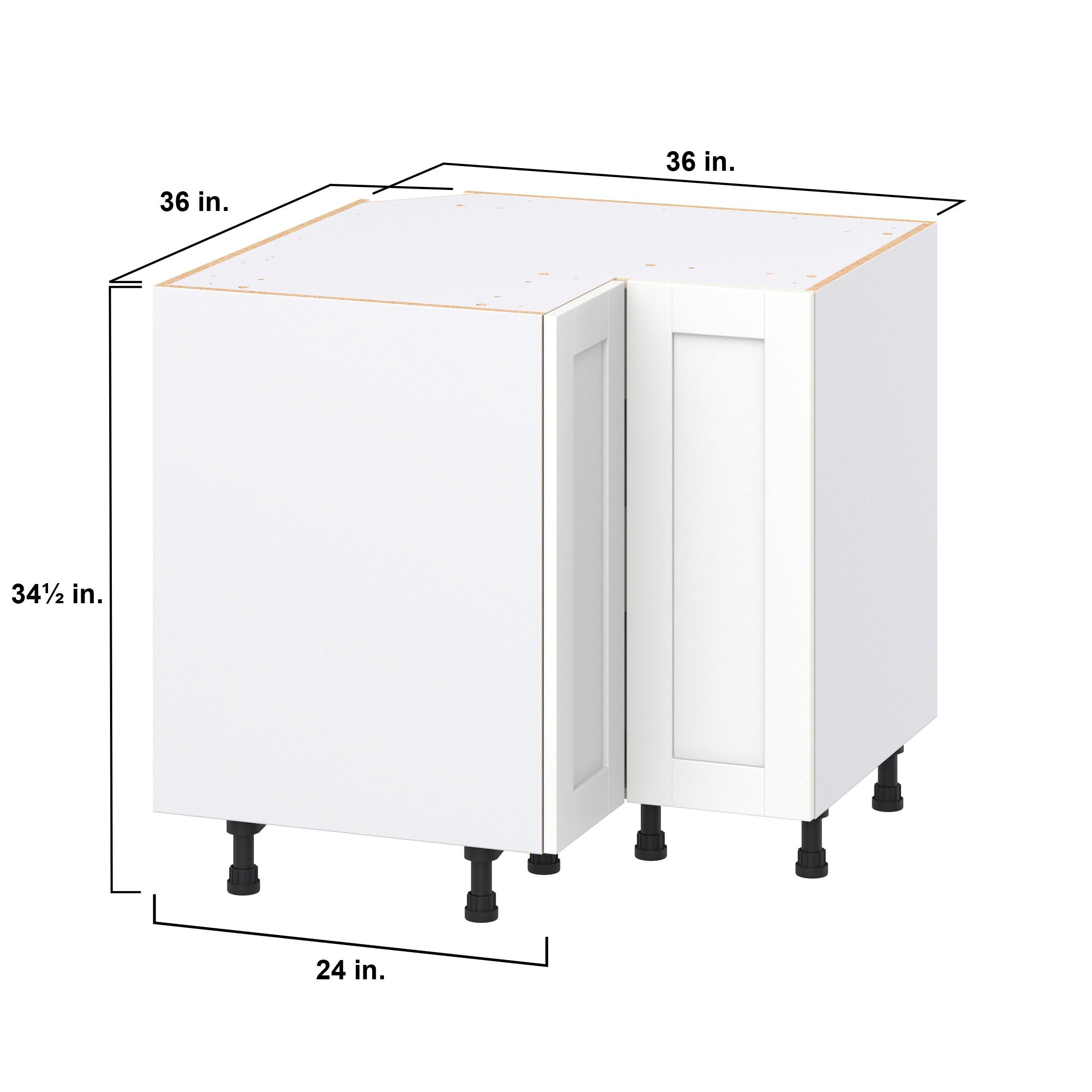Enhance your home with the timeless beauty of Summerhill classic shaker cabinets, available in fresh bright white and neutral light gray colors. Crafted from one-piece MDF Studio Design Collection Summerhill 36 in. Bright White Lazy Susan Corner Base Cabinet is designed to resist hairline cracks while the easy-to-clean finish stands up to stains and moisture. Featuring 5-piece doors and dovetail drawer joints, these cabinets offer durability and elegance. This collection combines style with everyday storage solutions.