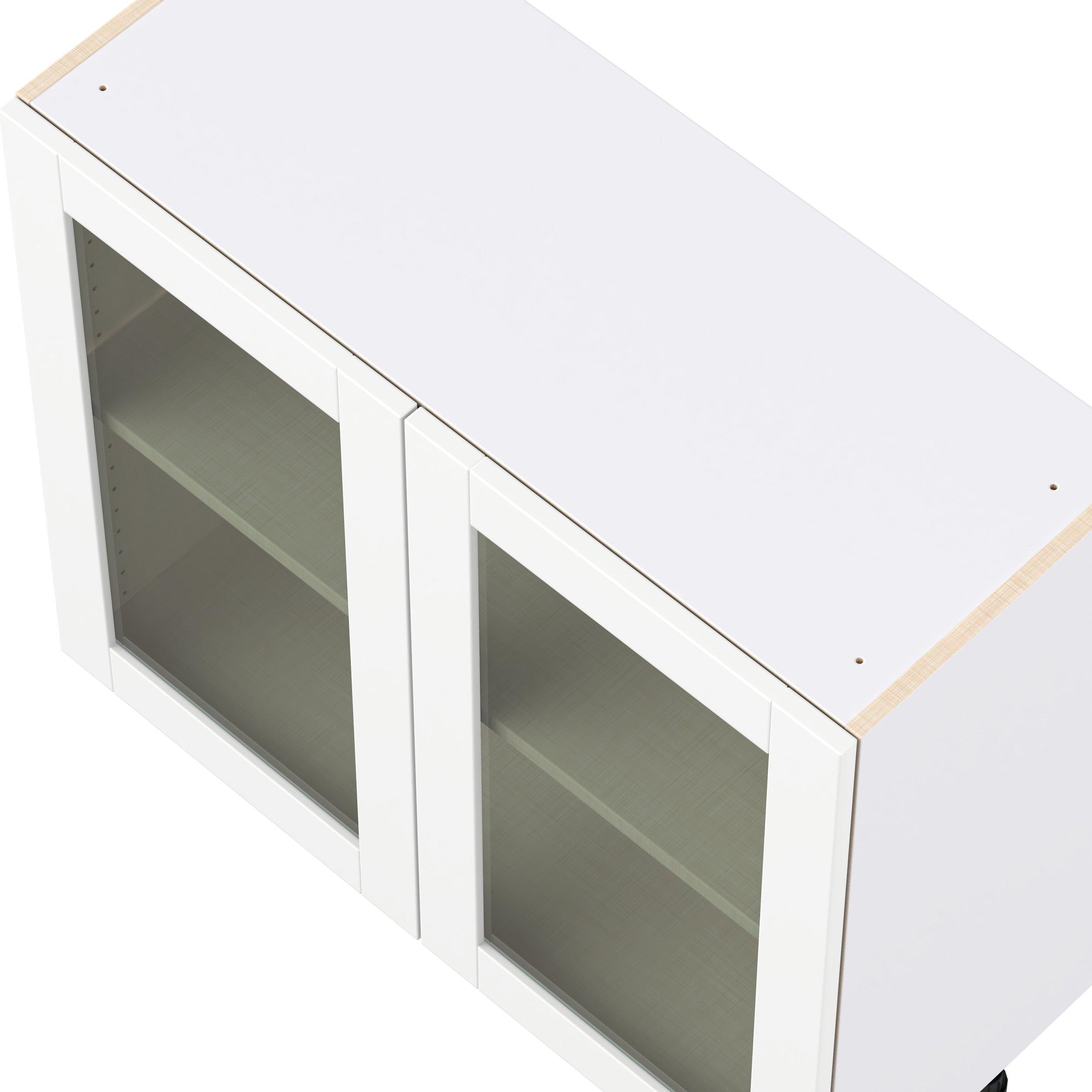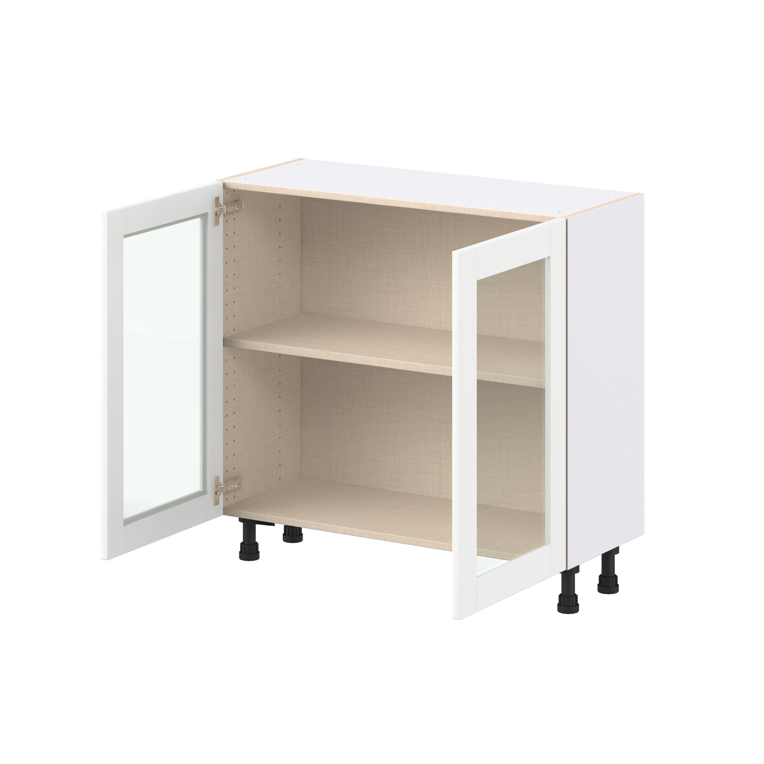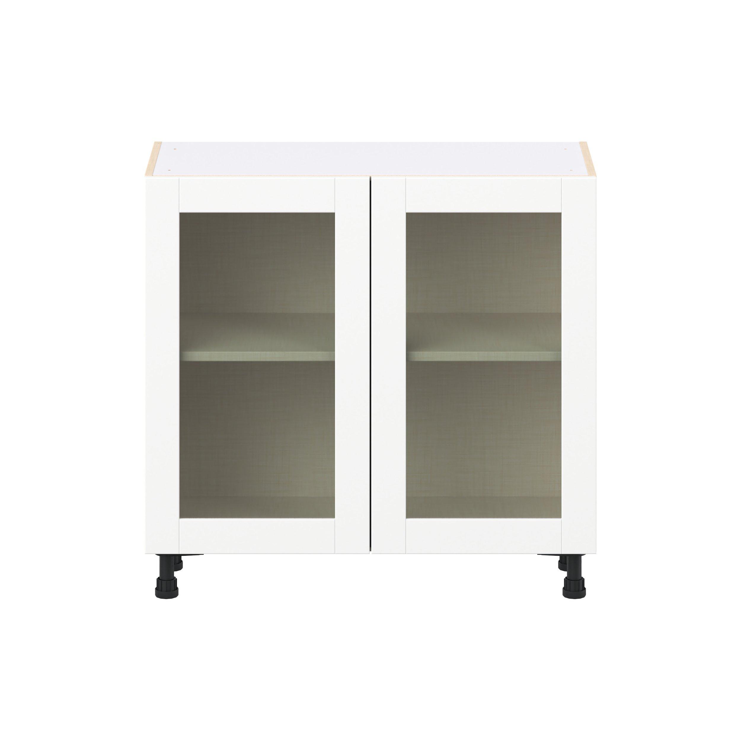 Enhance your home with the timeless beauty of Summerhill classic shaker cabinets, available in fresh bright white and neutral light gray colors. Crafted from one-piece MDF Studio Design Collection Summerhill 36 in. Bright White Shallow Base Cabinet with Glass Door is designed to resist hairline cracks while the easy-to-clean finish stands up to stains and moisture. Featuring 5-piece doors and dovetail drawer joints, these cabinets offer durability and elegance. This collection combines style with everyday storage solutions.