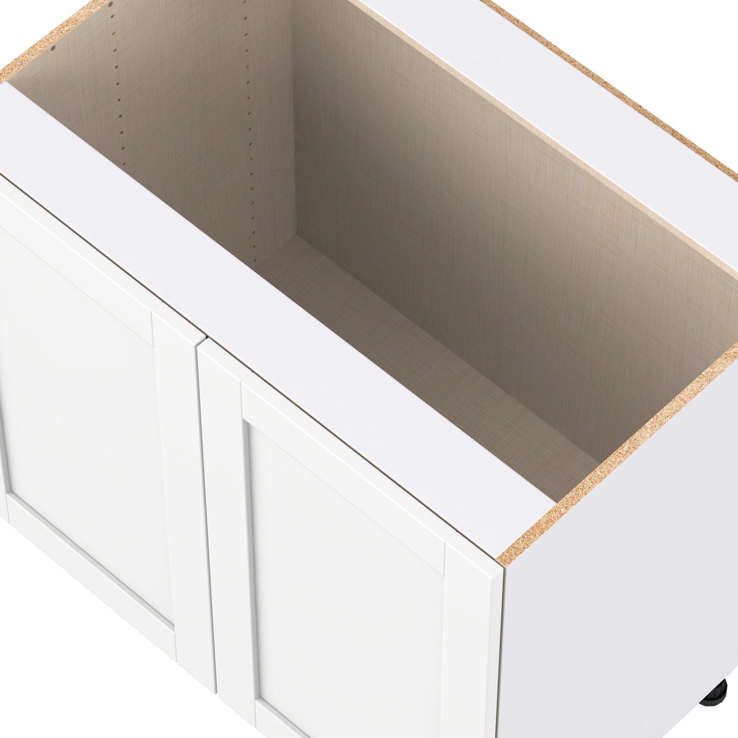 Enhance your home with the timeless beauty of Summerhill classic shaker cabinets, available in fresh bright white and neutral light gray colors. Crafted from one-piece MDF Studio Design Collection Summerhill 36 in. Bright White Sink Base Cabinet is designed to resist hairline cracks while the easy-to-clean finish stands up to stains and moisture. Featuring 5-piece doors and dovetail drawer joints, these cabinets offer durability and elegance. This collection combines style with everyday storage solutions.