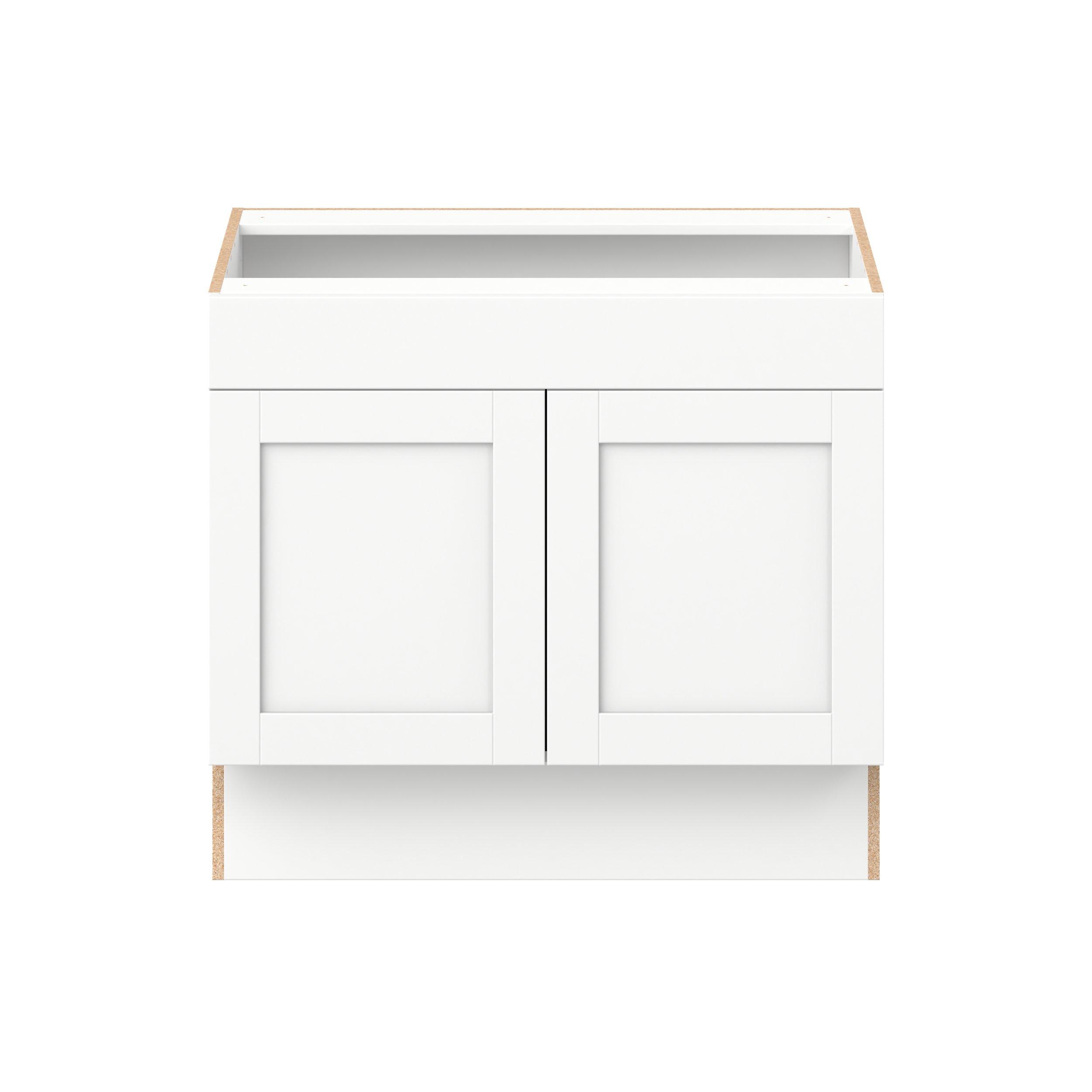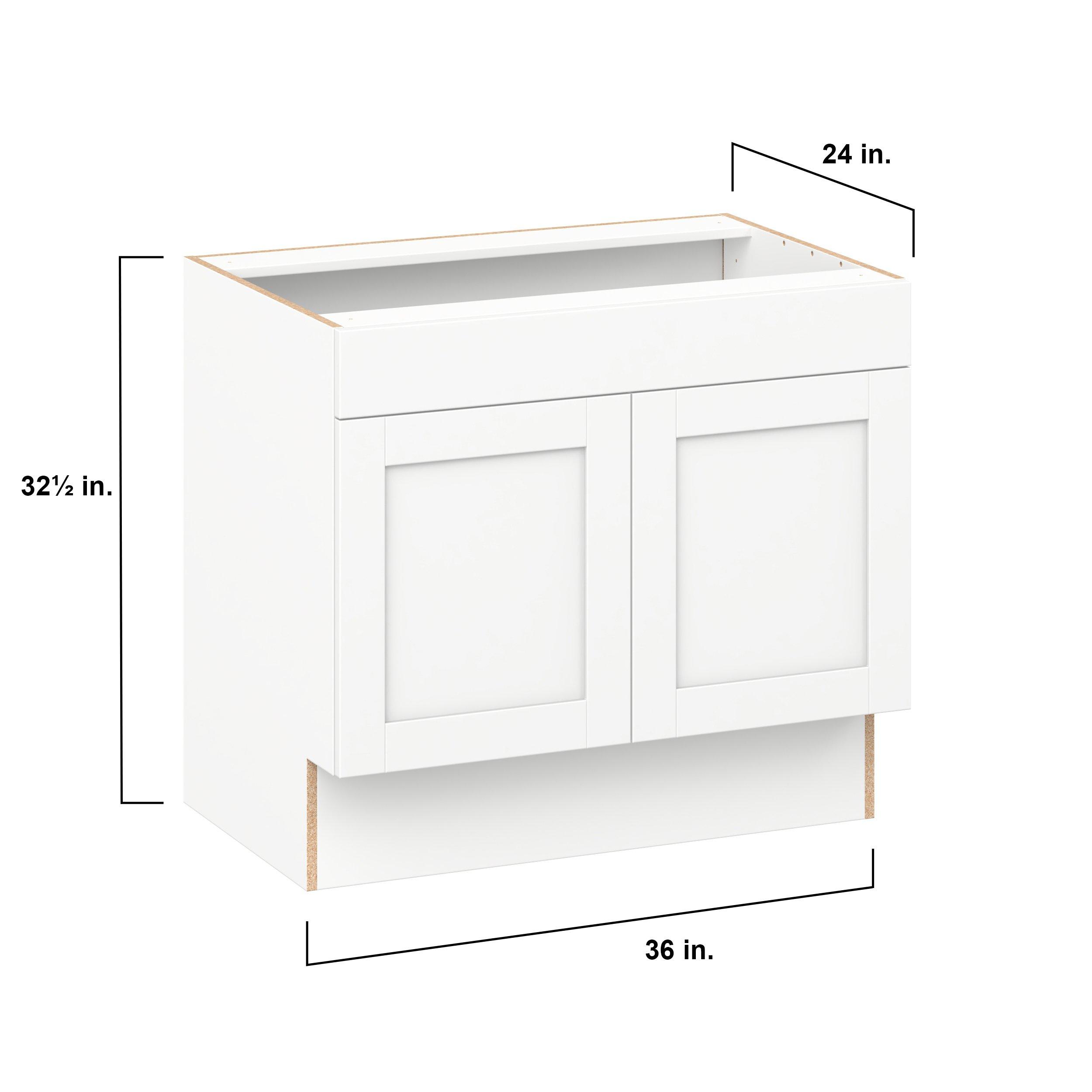 Enhance your home with the timeless beauty of Summerhill classic shaker cabinets, available in fresh bright white and neutral light gray colors. Crafted from one-piece MDF Studio Design Collection Summerhill 36 in. Bright White Sink Base Cabinet with False Front is designed to resist hairline cracks while the easy-to-clean finish stands up to stains and moisture. Featuring 5-piece doors and dovetail drawer joints, these cabinets offer durability and elegance. This collection combines style with everyday storage solutions.