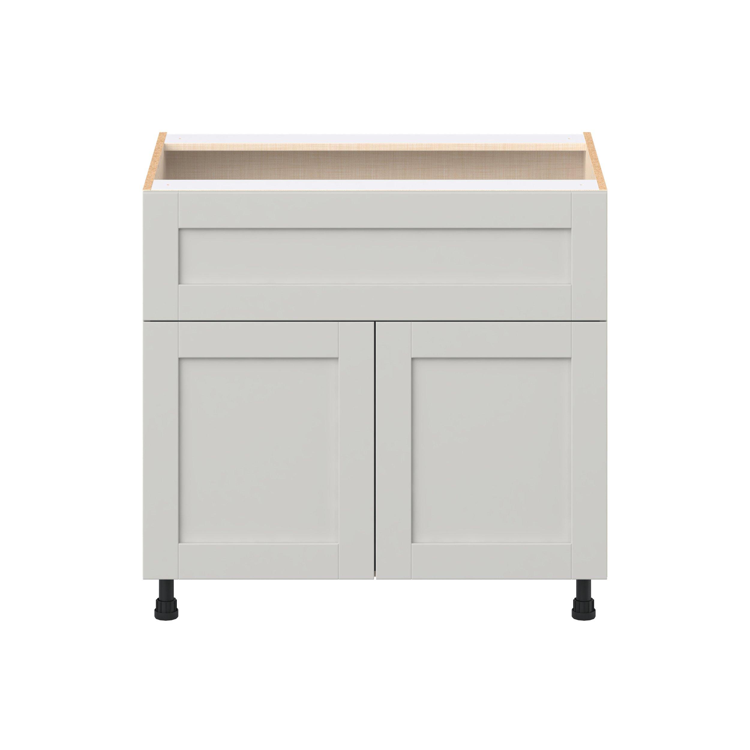 Enhance your home with the timeless beauty of Summerhill classic shaker cabinets, available in fresh bright white and neutral light gray colors. Crafted from one-piece MDF Studio Design Collection Summerhill 36 in. Light Gray Door and Drawer Base Cabinet is designed to resist hairline cracks while the easy-to-clean finish stands up to stains and moisture. Featuring 5-piece doors and dovetail drawer joints, these cabinets offer durability and elegance. This collection combines style with everyday storage solutions.