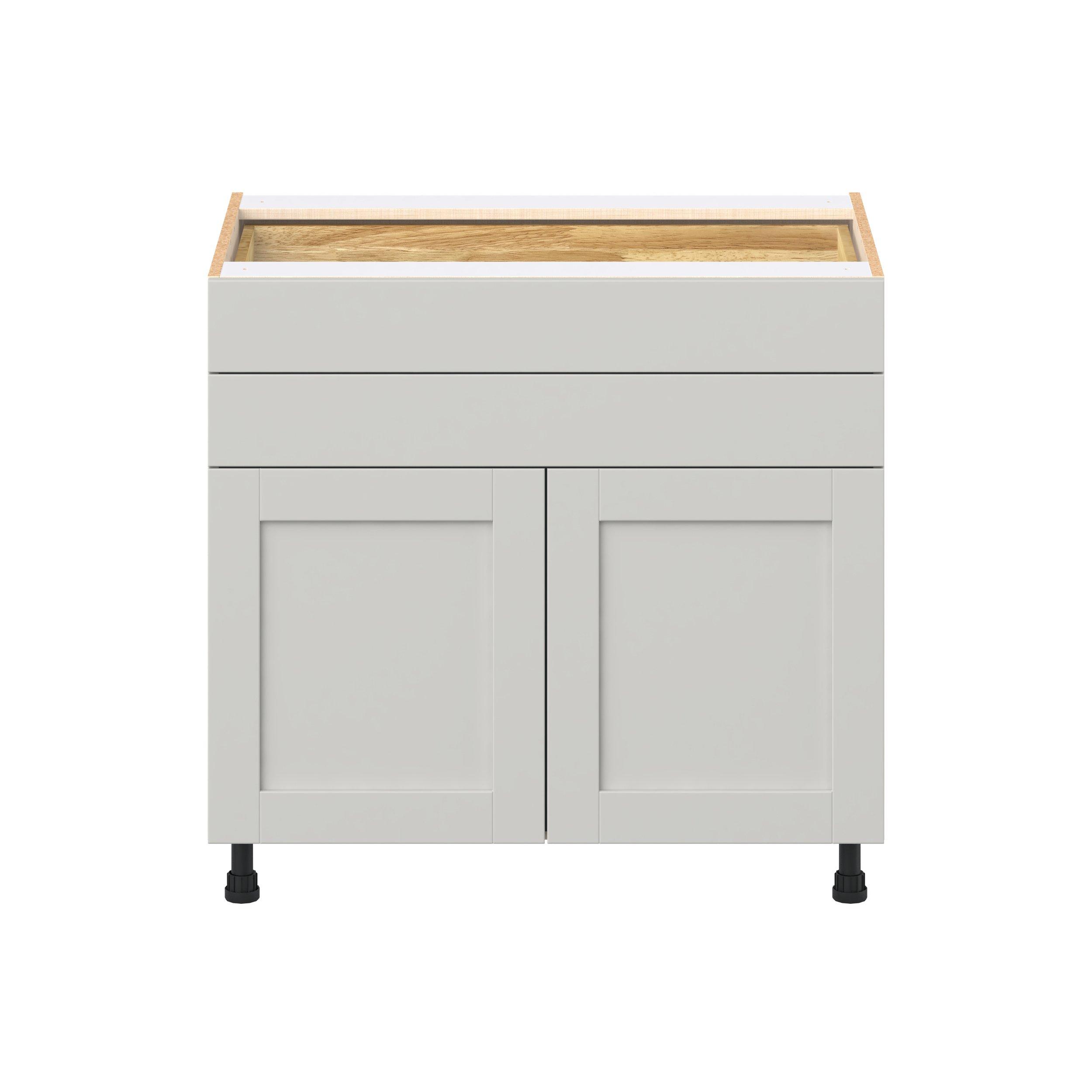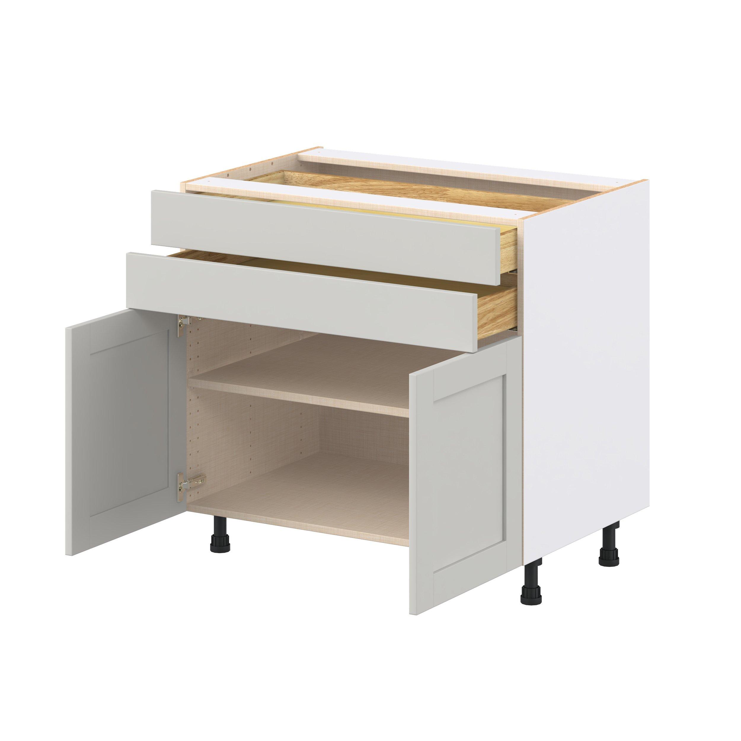 Enhance your home with the timeless beauty of Summerhill classic shaker cabinets, available in fresh bright white and neutral light gray colors. Crafted from one-piece MDF Studio Design Collection Summerhill 36 in. Light Gray Door and Drawer Base Cabinet is designed to resist hairline cracks while the easy-to-clean finish stands up to stains and moisture. Featuring 5-piece doors and dovetail drawer joints, these cabinets offer durability and elegance. This collection combines style with everyday storage solutions.