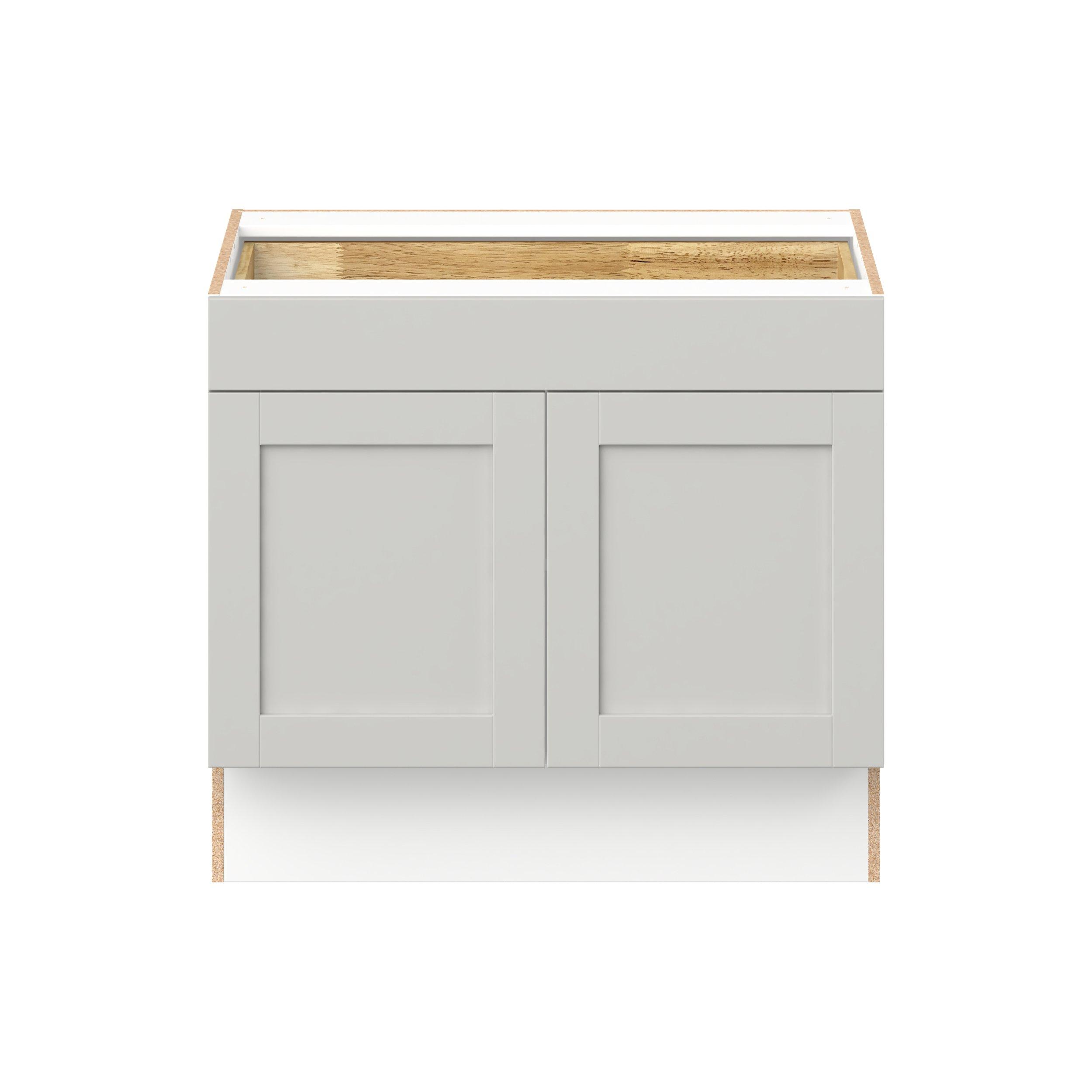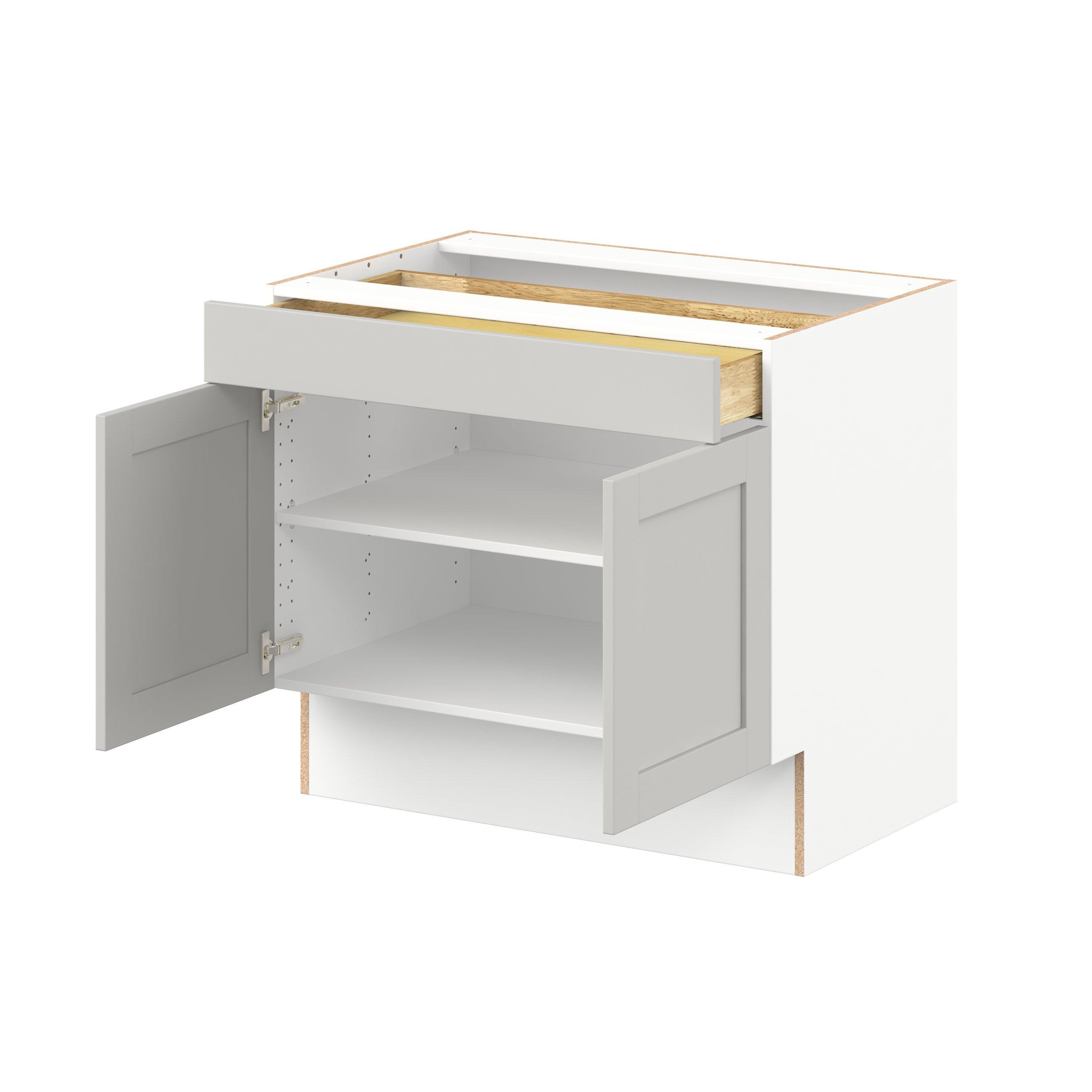 Enhance your home with the timeless beauty of Summerhill classic shaker cabinets, available in fresh bright white and neutral light gray colors. Crafted from one-piece MDF Studio Design Collection Summerhill 36 in. Light Gray Door and Drawer Base Cabinet is designed to resist hairline cracks while the easy-to-clean finish stands up to stains and moisture. Featuring 5-piece doors and dovetail drawer joints, these cabinets offer durability and elegance. This collection combines style with everyday storage solutions.