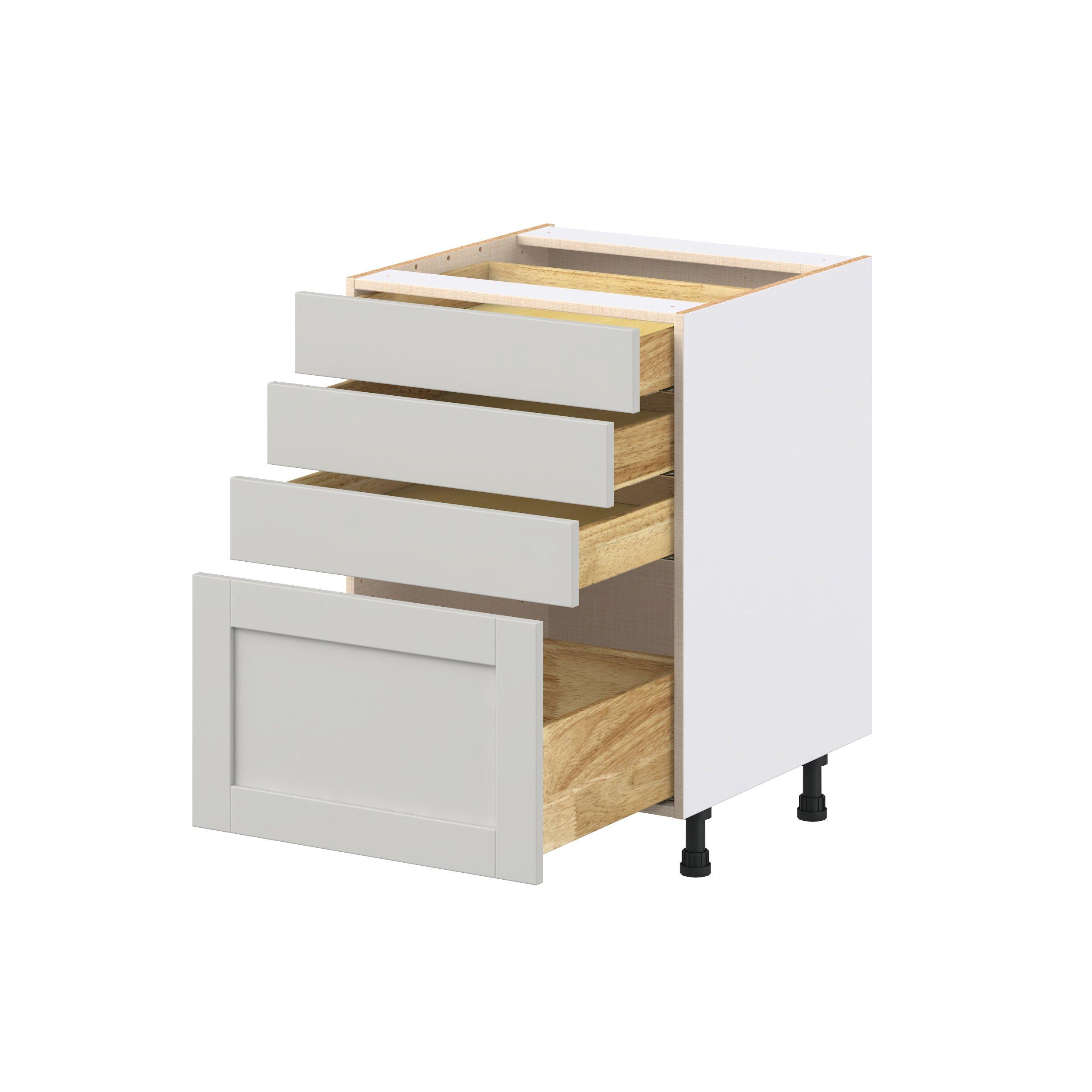 Enhance your home with the timeless beauty of Summerhill classic shaker cabinets, available in fresh bright white and neutral light gray colors. Crafted from one-piece MDF Studio Design Collection Summerhill 24 in. Light Gray Drawer Base Cabinet is designed to resist hairline cracks while the easy-to-clean finish stands up to stains and moisture. Featuring 5-piece doors and dovetail drawer joints, these cabinets offer durability and elegance. This collection combines style with everyday storage solutions.