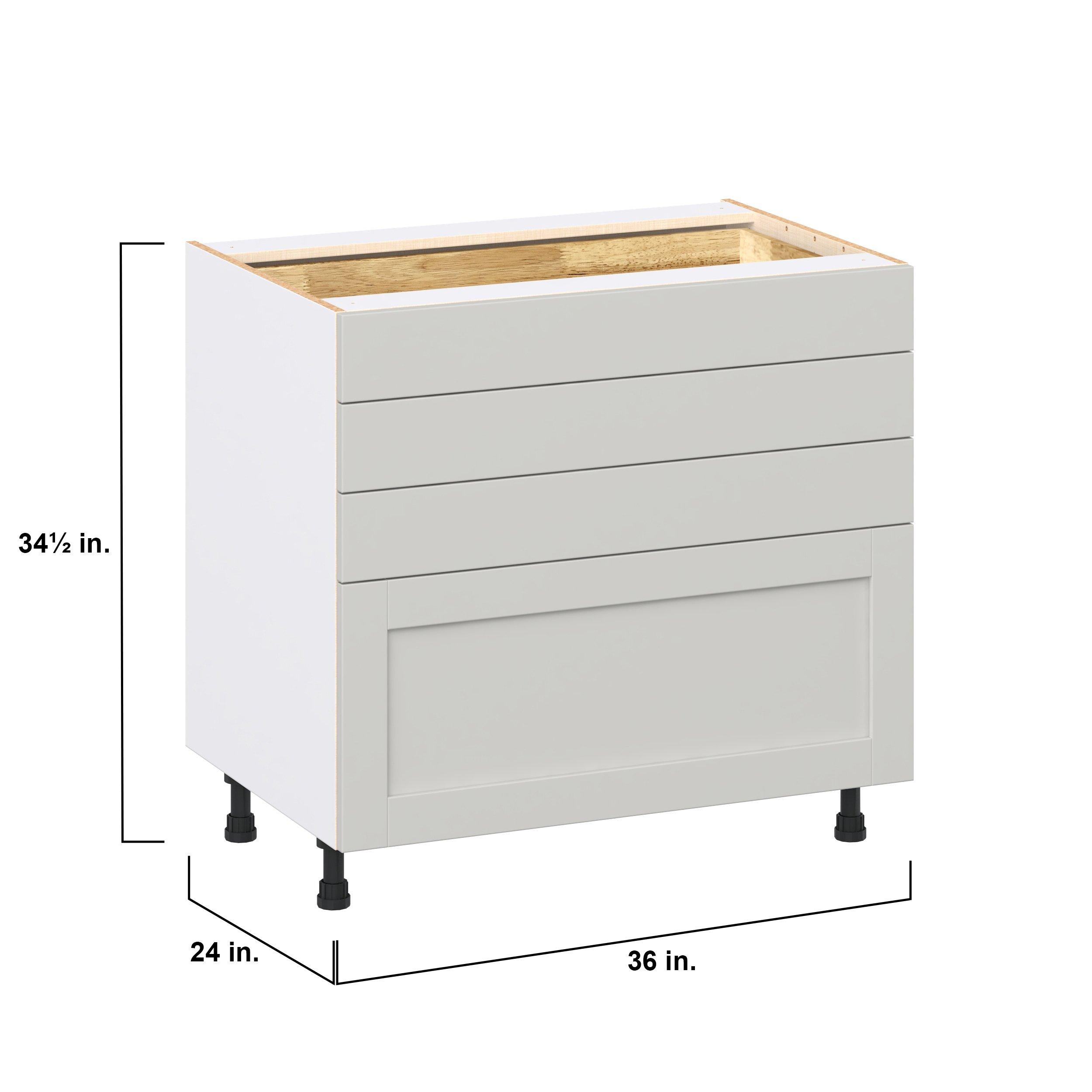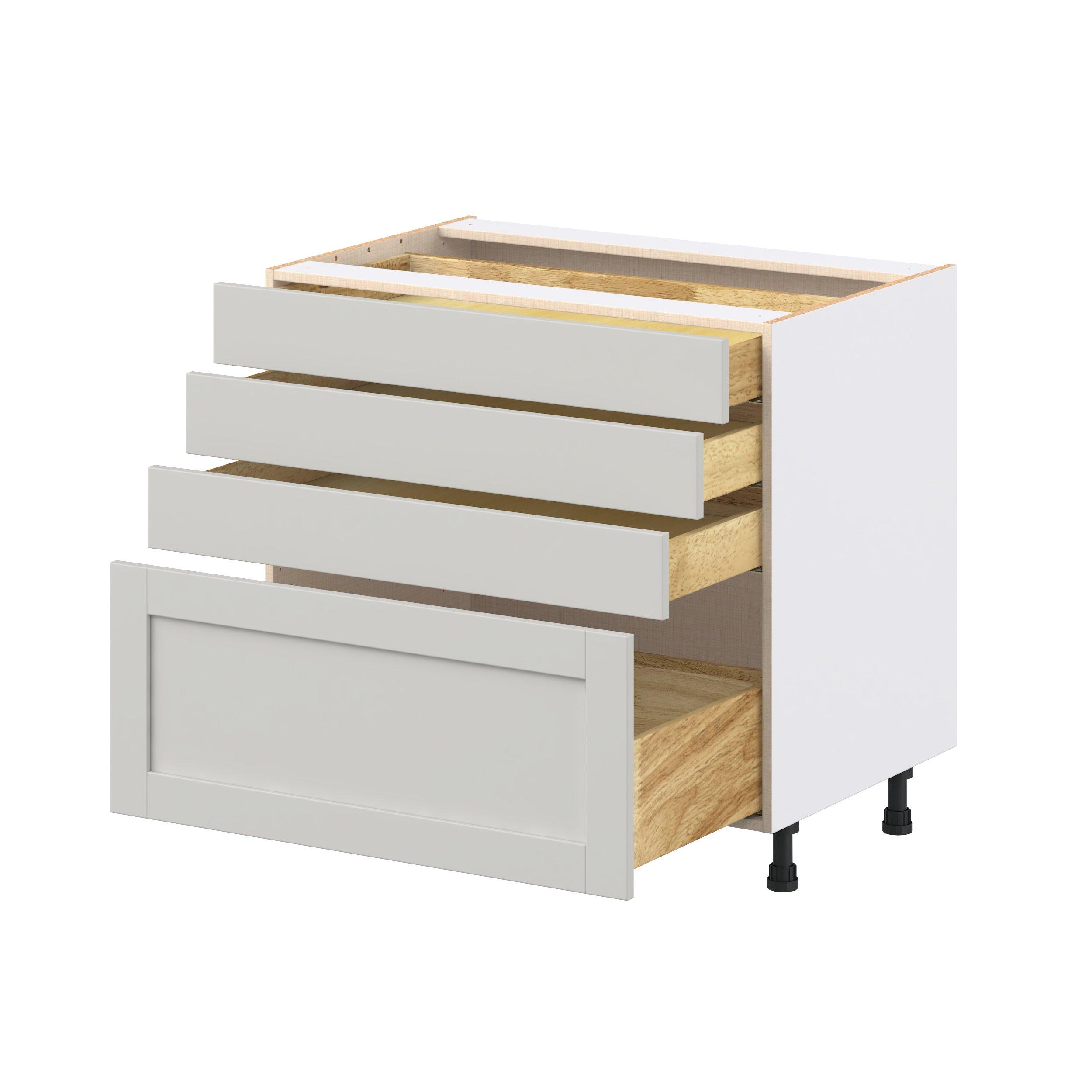 Enhance your home with the timeless beauty of Summerhill classic shaker cabinets, available in fresh bright white and neutral light gray colors. Crafted from one-piece MDF Studio Design Collection Summerhill 36 in. Light Gray Drawer Base Cabinet is designed to resist hairline cracks while the easy-to-clean finish stands up to stains and moisture. Featuring 5-piece doors and dovetail drawer joints, these cabinets offer durability and elegance. This collection combines style with everyday storage solutions.