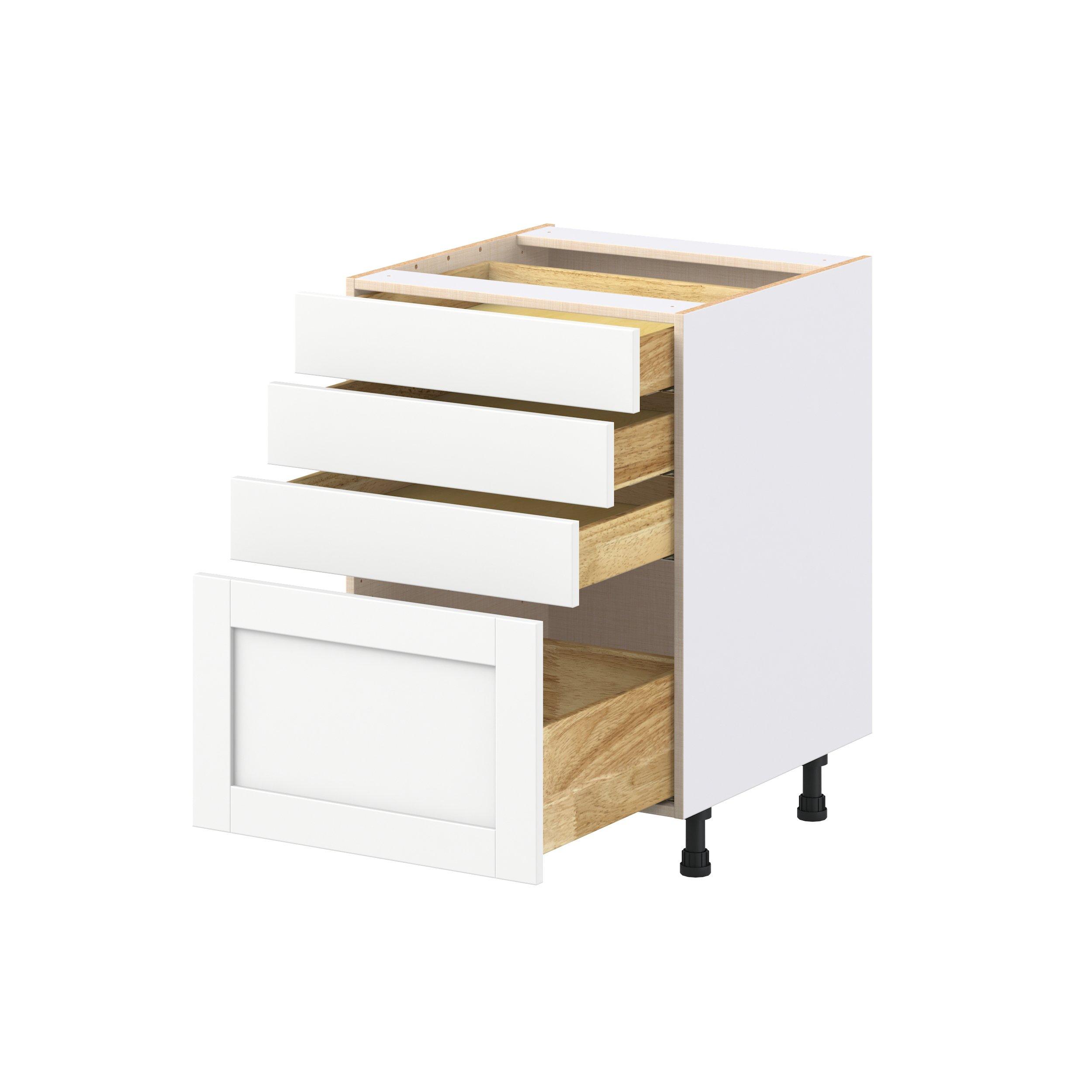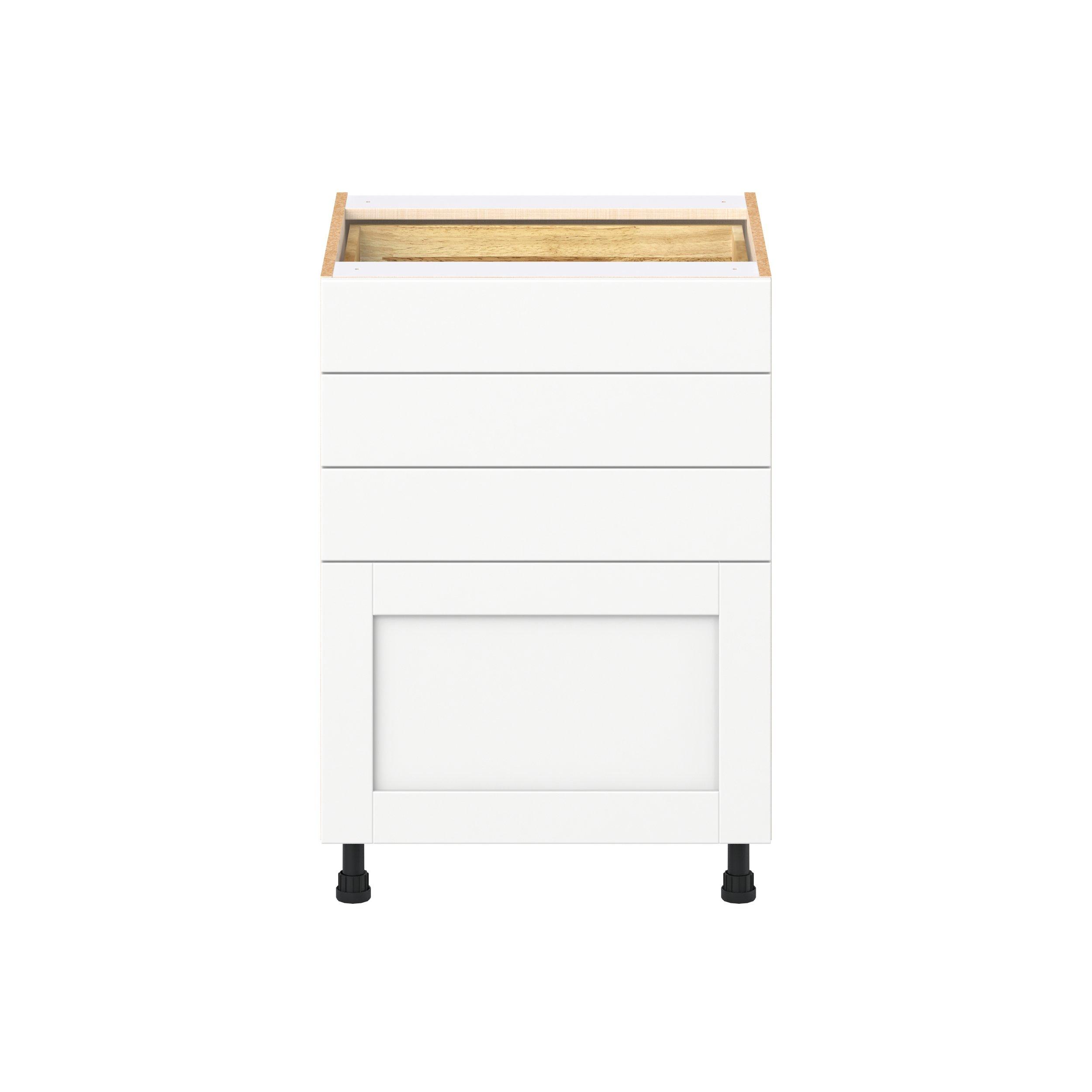 Enhance your home with the timeless beauty of Summerhill classic shaker cabinets, available in fresh bright white and neutral light gray colors. Crafted from one-piece MDF Studio Design Collection Summerhill 24 in. Bright White Drawer Base Cabinet is designed to resist hairline cracks while the easy-to-clean finish stands up to stains and moisture. Featuring 5-piece doors and dovetail drawer joints, these cabinets offer durability and elegance. This collection combines style with everyday storage solutions.