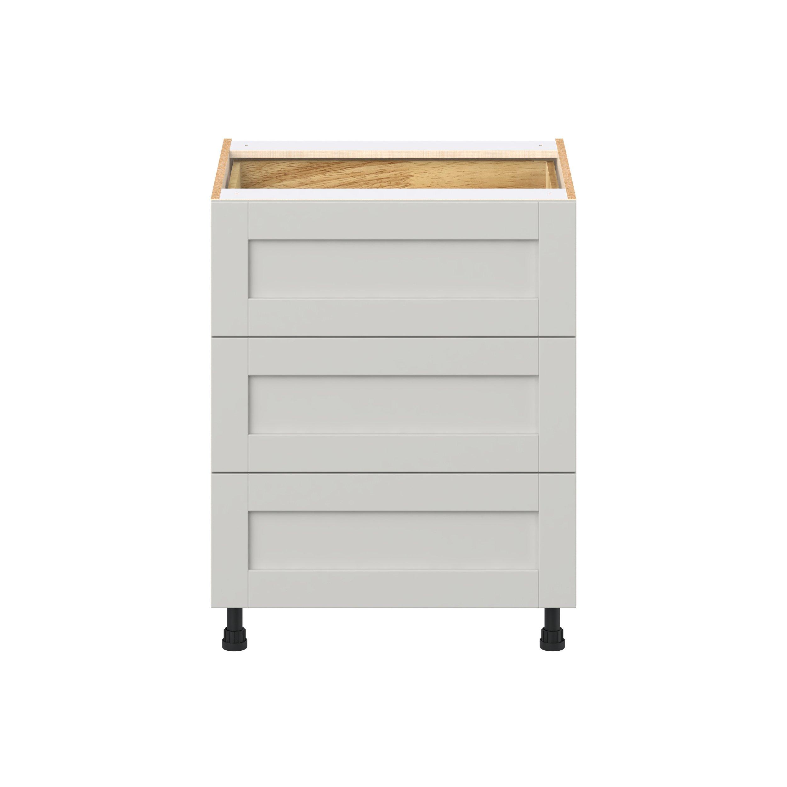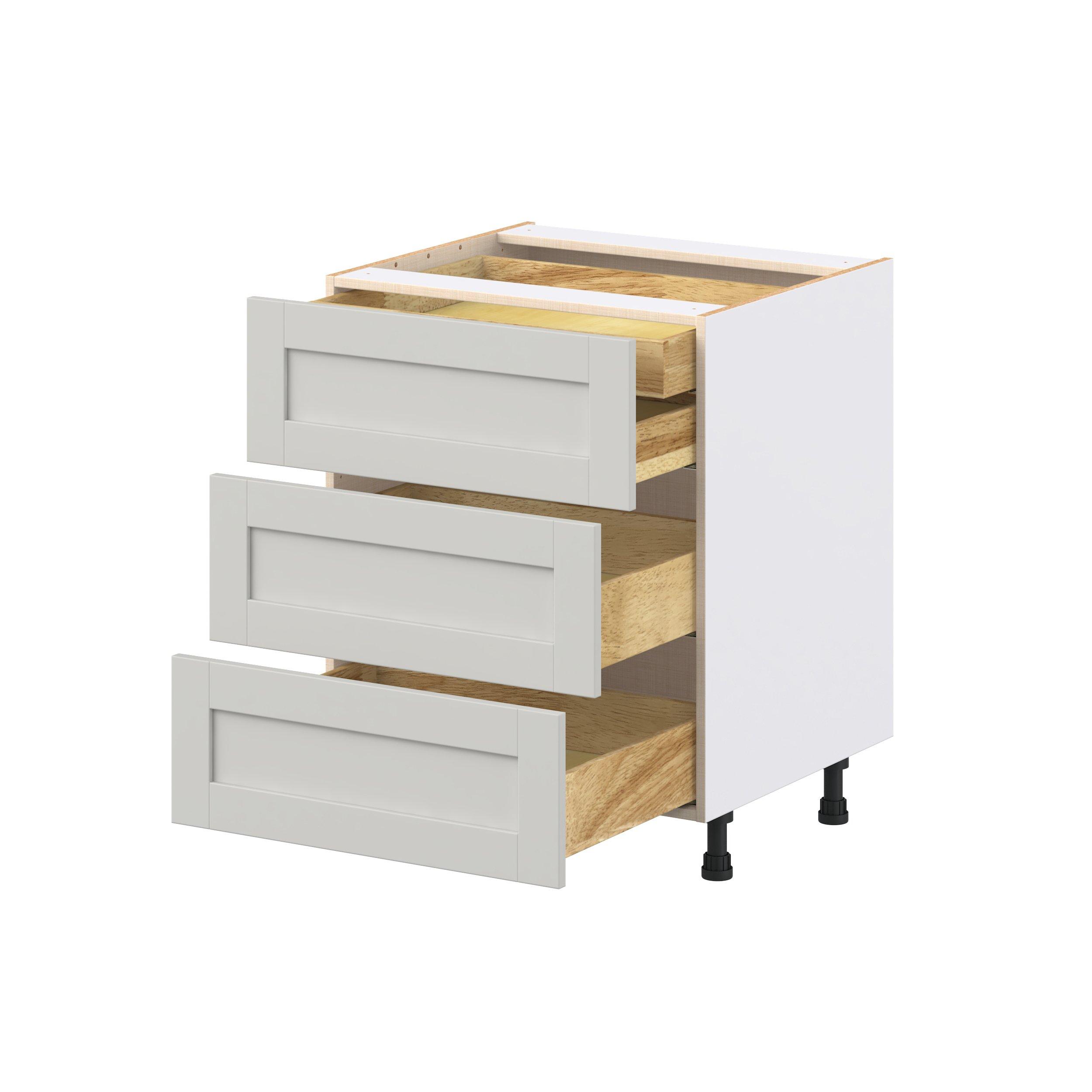 Enhance your home with the timeless beauty of Summerhill classic shaker cabinets, available in fresh bright white and neutral light gray colors. Crafted from one-piece MDF Studio Design Collection Summerhill 27 in. Light Gray Base Cabinet with Inner Pull-Out Drawer is designed to resist hairline cracks while the easy-to-clean finish stands up to stains and moisture. Featuring 5-piece doors and dovetail drawer joints, these cabinets offer durability and elegance. This collection combines style with everyday storage solutions.