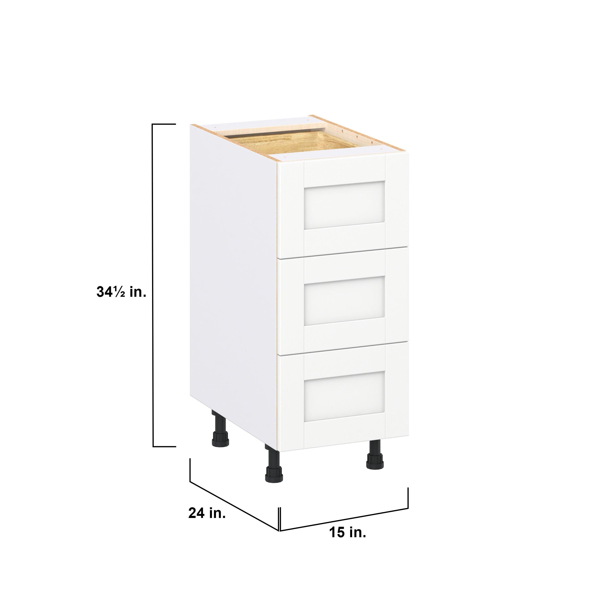 Enhance your home with the timeless beauty of Summerhill classic shaker cabinets, available in fresh bright white and neutral light gray colors. Crafted from one-piece MDF Studio Design Collection Summerhill 15 in. Bright White Base Cabinet with Inner Pull-Out Drawer is designed to resist hairline cracks while the easy-to-clean finish stands up to stains and moisture. Featuring 5-piece doors and dovetail drawer joints, these cabinets offer durability and elegance. This collection combines style with everyday storage solutions.