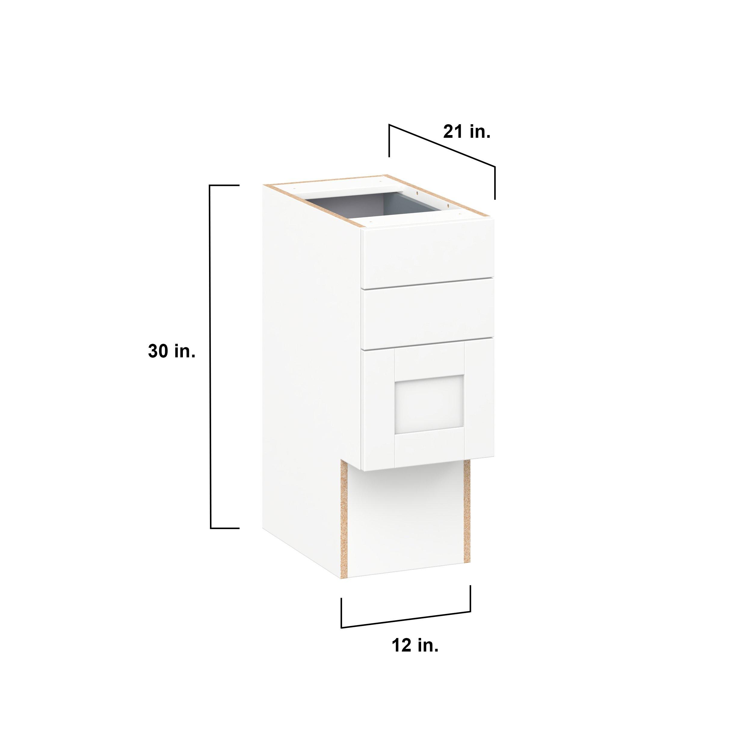 Enhance your home with the timeless beauty of Summerhill classic shaker cabinets, available in fresh bright white and neutral light gray colors. Crafted from one-piece MDF Studio Design Collection Summerhill 12 in. Bright White Vanity Drawer Base Cabinet is designed to resist hairline cracks while the easy-to-clean finish stands up to stains and moisture. Featuring 5-piece doors and dovetail drawer joints, these cabinets offer durability and elegance. This collection combines style with everyday storage solutions.