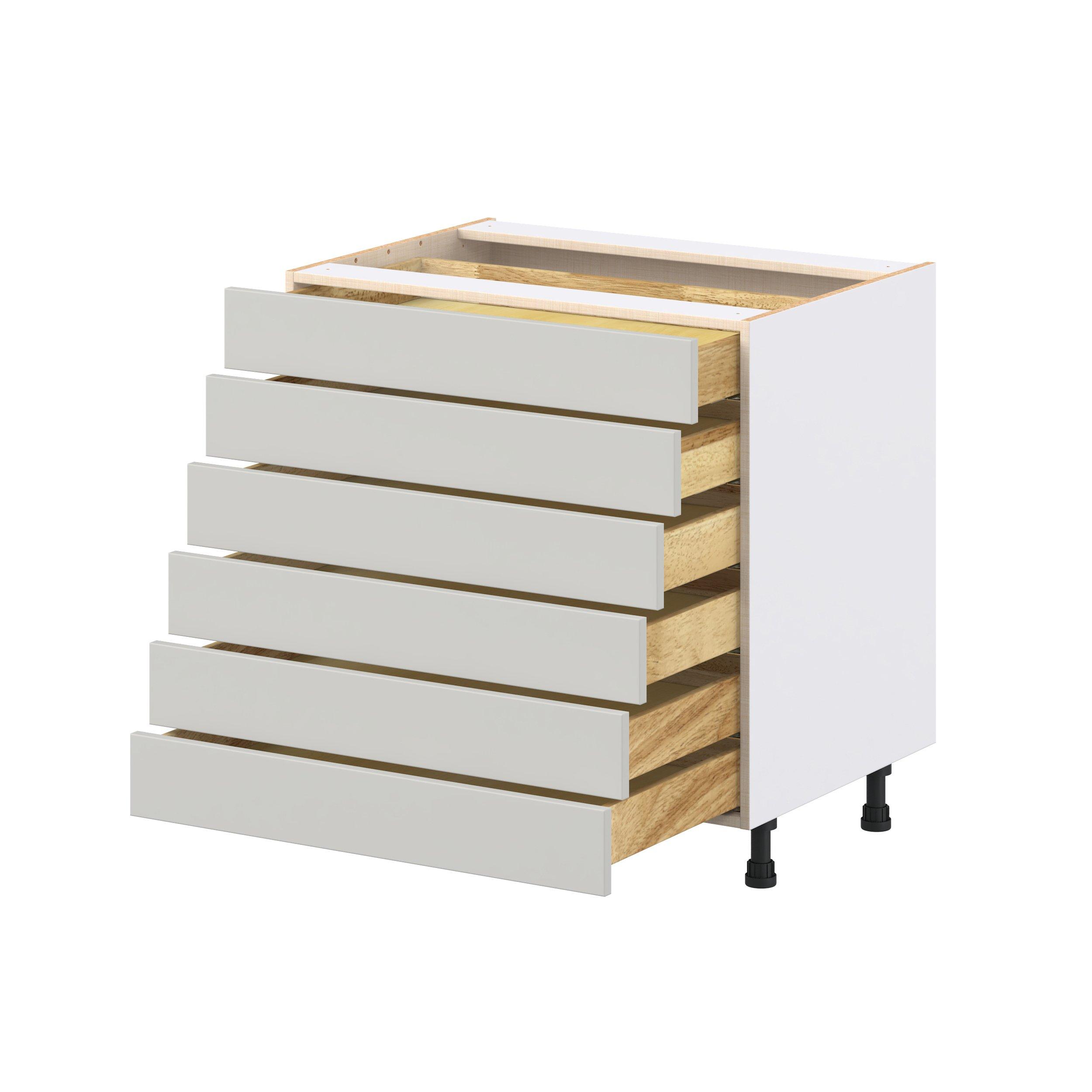 Enhance your home with the timeless beauty of Summerhill classic shaker cabinets, available in fresh bright white and neutral light gray colors. Crafted from one-piece MDF Studio Design Collection Summerhill 33 in. Light Gray Drawer Base Cabinet is designed to resist hairline cracks while the easy-to-clean finish stands up to stains and moisture. Featuring 5-piece doors and dovetail drawer joints, these cabinets offer durability and elegance. This collection combines style with everyday storage solutions.