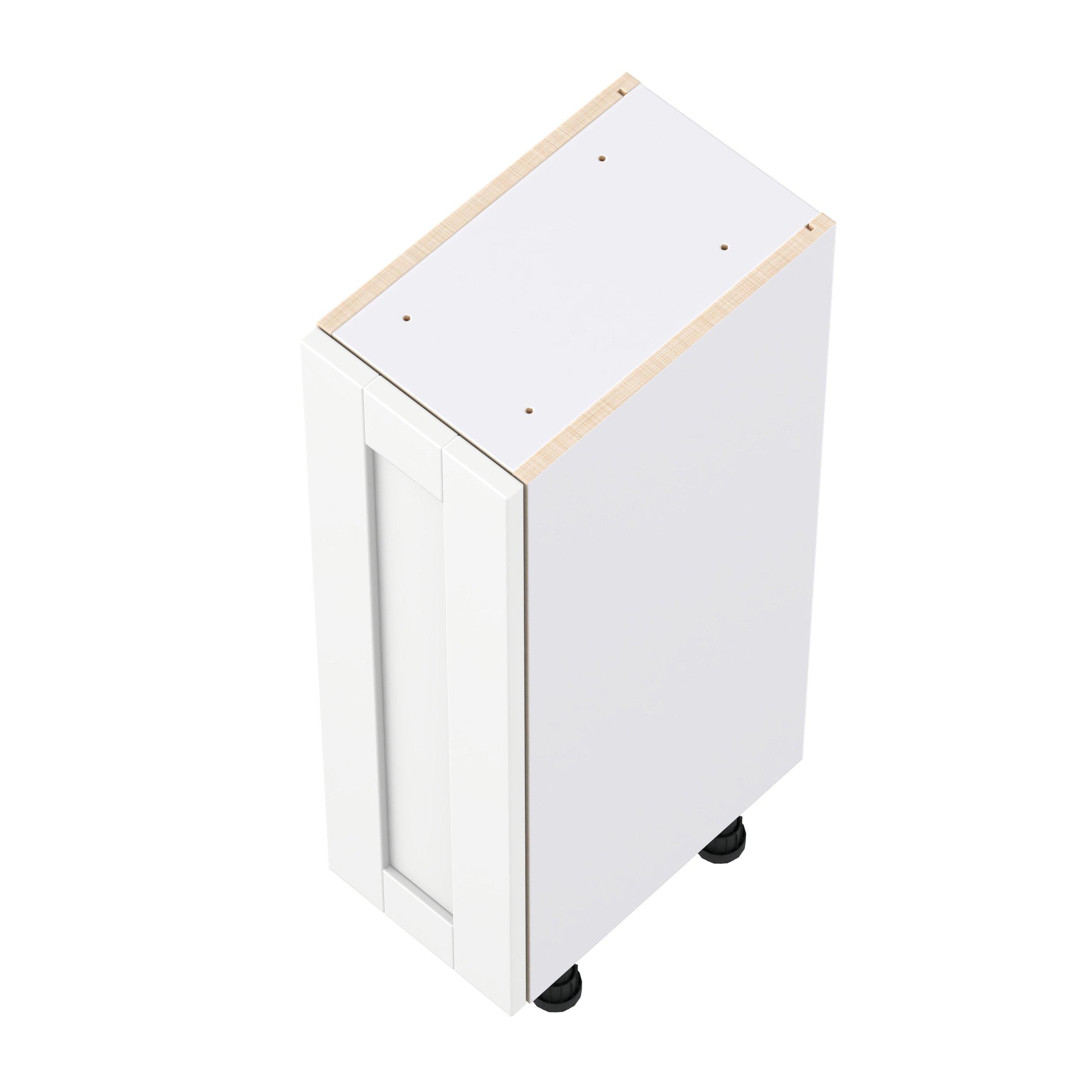 Enhance your home with the timeless beauty of Summerhill classic shaker cabinets, available in fresh bright white and neutral light gray colors. Crafted from one-piece MDF Studio Design Collection Summerhill 9 in. Bright White Shallow Base Cabinet is designed to resist hairline cracks while the easy-to-clean finish stands up to stains and moisture. Featuring 5-piece doors and dovetail drawer joints, these cabinets offer durability and elegance. This collection combines style with everyday storage solutions.