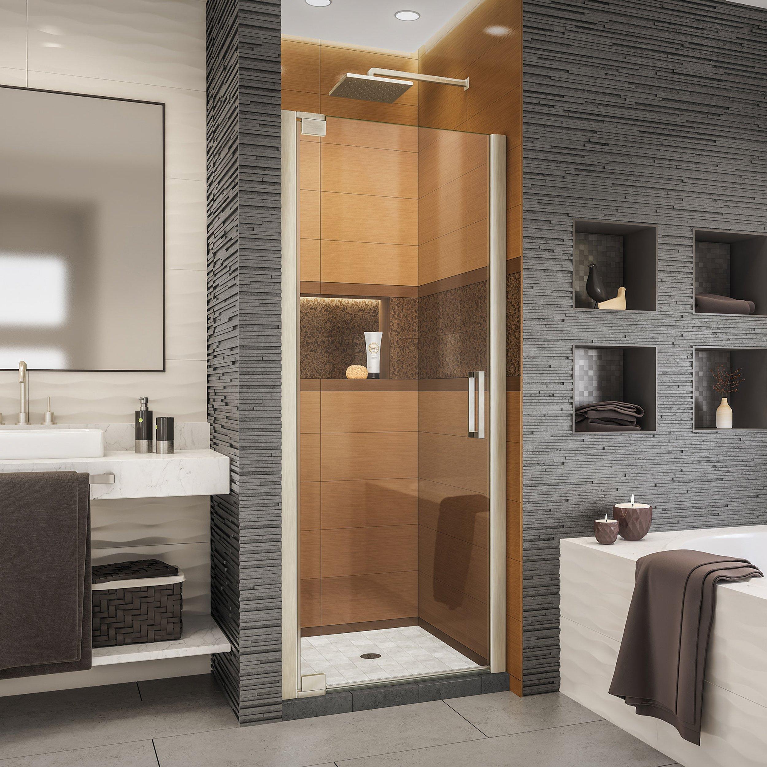 1 Year LimitedThe Elegance-LS Brushed Nickel Pivot Shower Door makes your shower the focal point of the bathroom and provides the ultimate solution for your shower project. Glass is treated with DreamLine exclusive ClearMax water repellant and stain resistant coating for superior protection and easy maintenance.