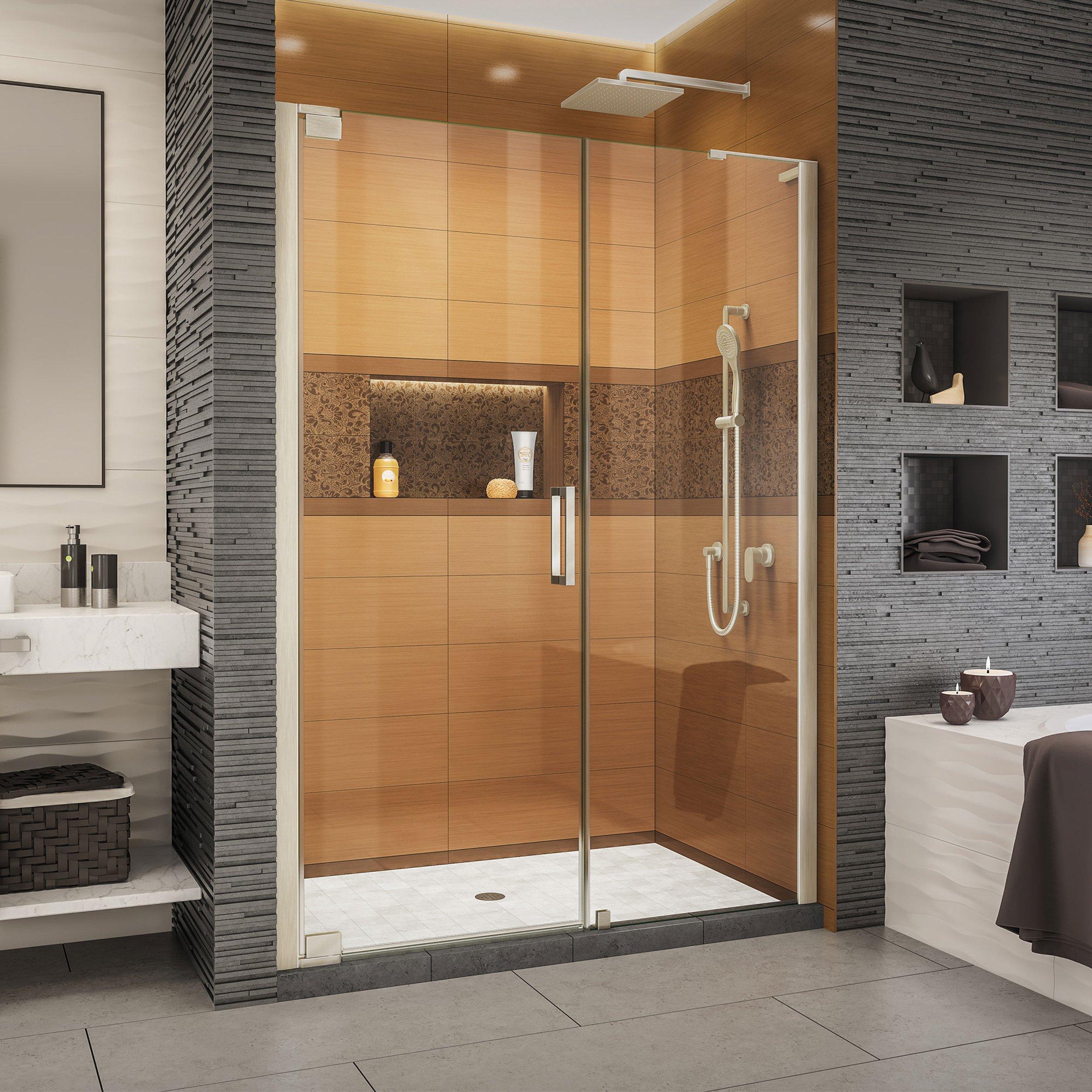 1 Year LimitedThe Elegance-LS Brushed Nickel Pivot Shower Door makes your shower the focal point of the bathroom and provides the ultimate solution for your shower project. Glass is treated with DreamLine exclusive ClearMax water repellant and stain resistant coating for superior protection and easy maintenance.