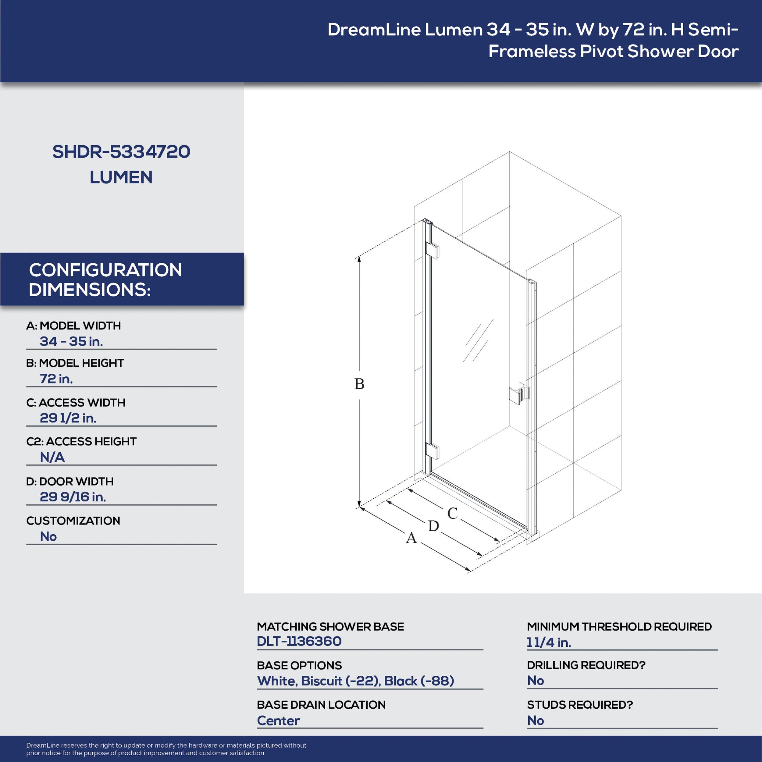 1 Year LimitedThe Lumen Brushed Nickel Semi-Frameless Shower Door makes your shower the focal point of the bathroom and provides the ultimate solution for your shower project. Glass is treated with DreamLine exclusive ClearMax water repellant and stain resistant coating for superior protection and easy maintenance.