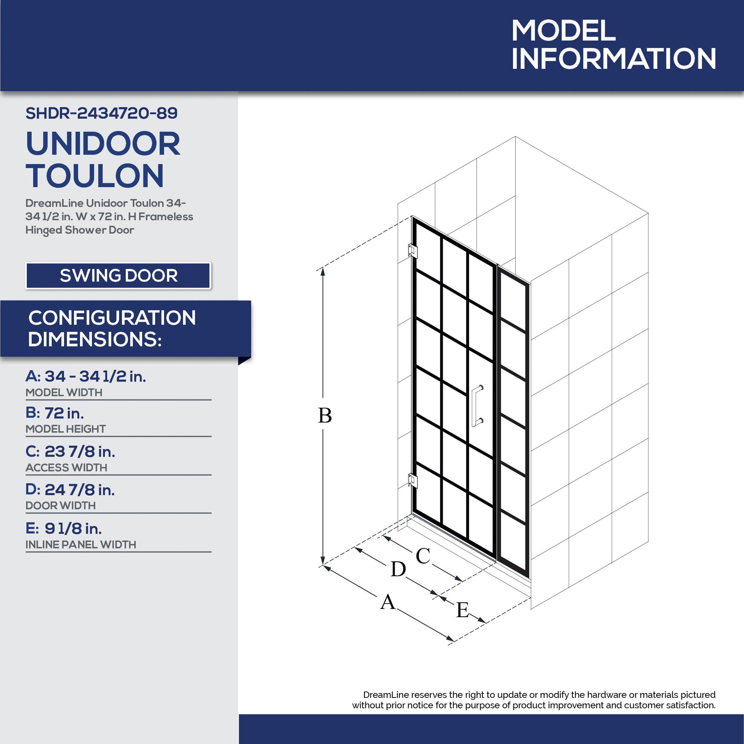 The Unidoor Toulon Matte Black Hinged Shower Door makes your shower the focal point of the bathroom and provides the ultimate solution for your shower project. Glass is treated with DreamLine exclusive ClearMax water repellant and stain resistant coating for superior protection and easy maintenance.