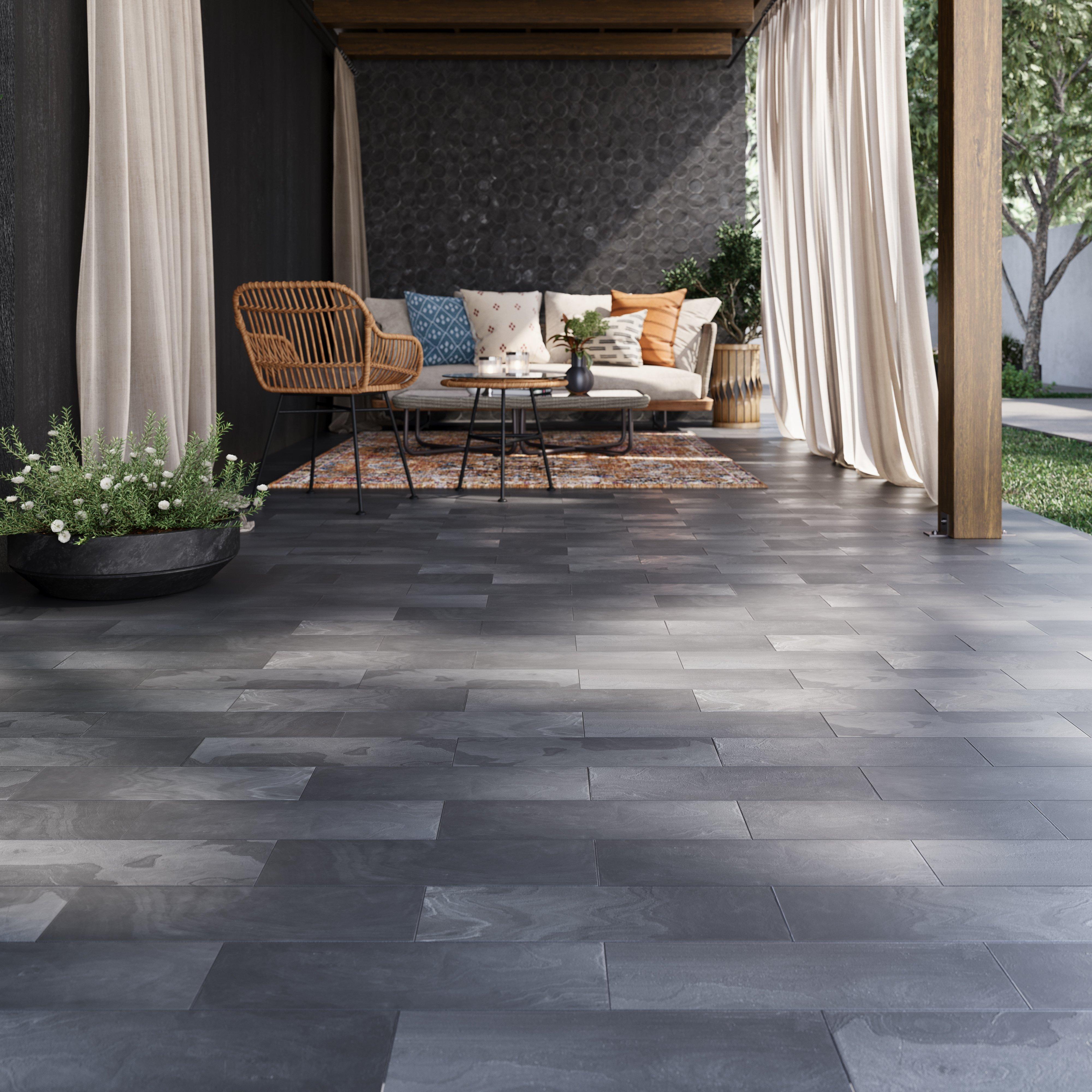 Natural stone like this beautiful black 8 x 20 Thunder Black Honed Slate Tile is an excellent flooring choice.