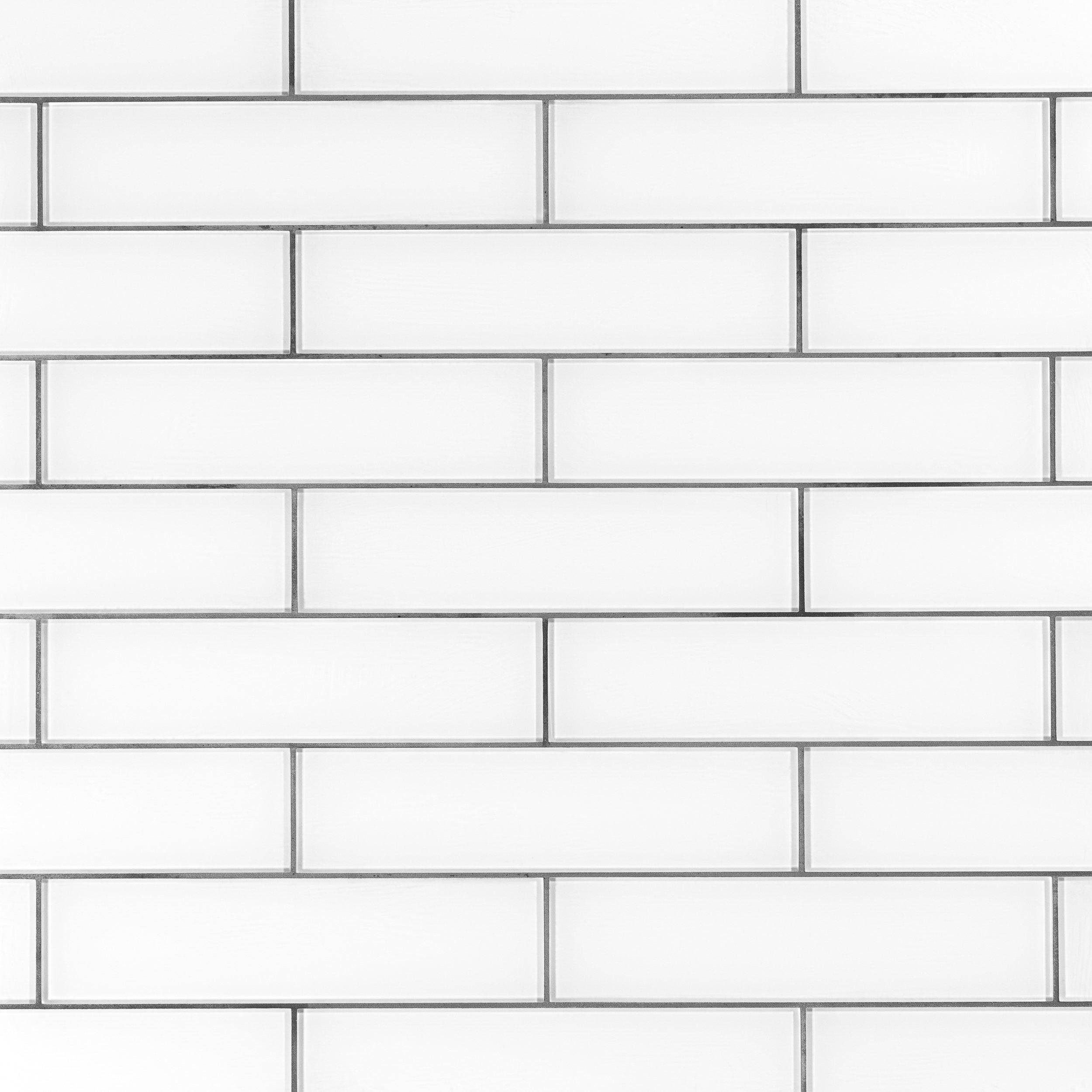 Liven up any room with this rectangle 4 x 16 Snow Glass Tile in white.