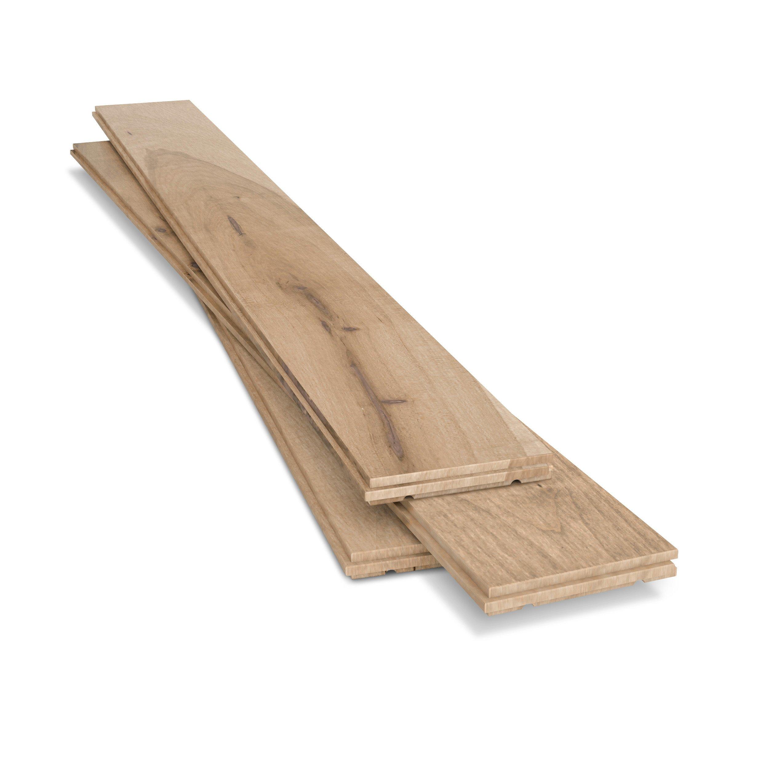 This Euro Beau Maple Wire-Brushed Solid Hardwood is 3/4 x 5in. and has a 50 yr res./ 5 yr comm. warranty.