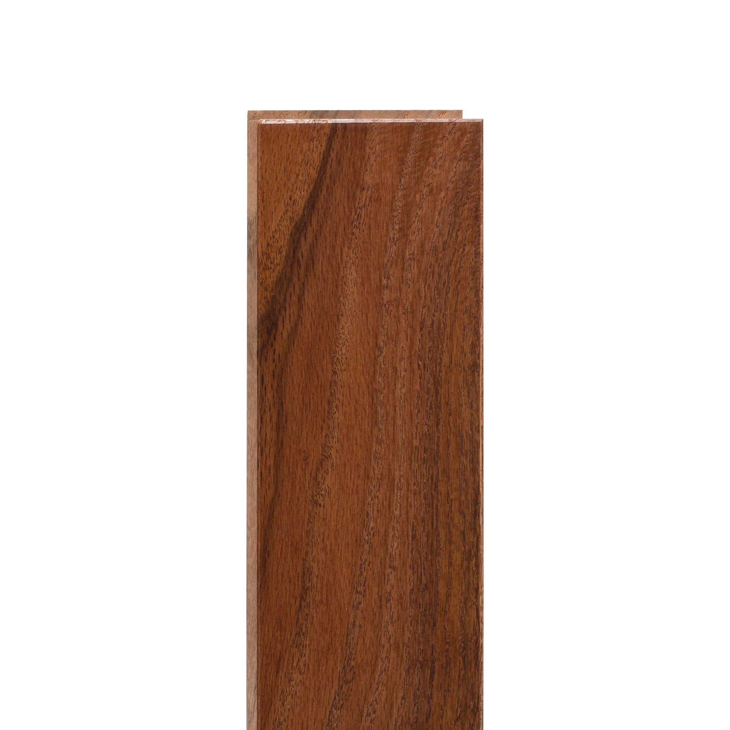This Gunstock Red Oak Smooth Solid Hardwood is 3/4 x 3 1/4in. and has a 50 year residential/ 5 year commercial warranty.