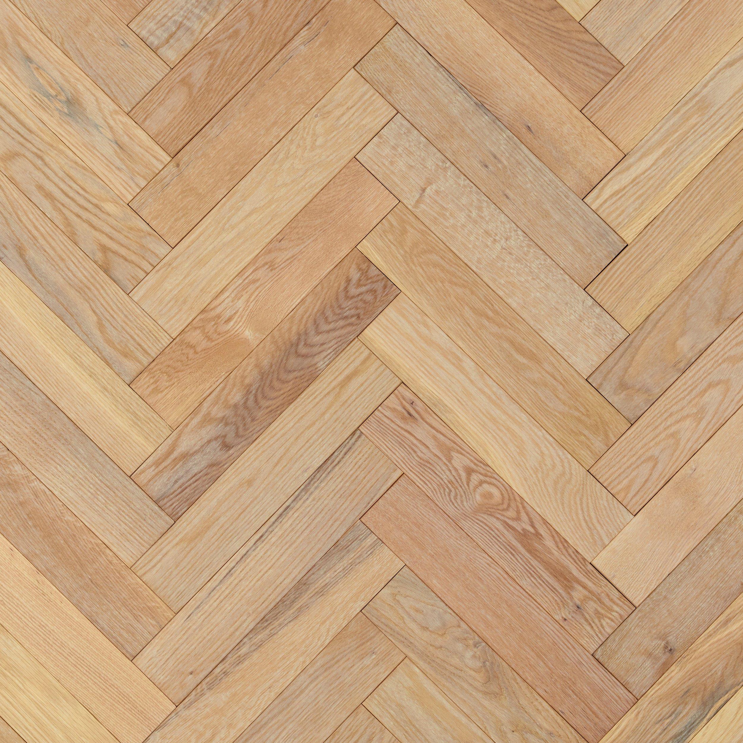 This 3/4in. x 3in. Iceberg White Oak Herringbone Smooth Solid Hardwood has a lifetime residential warranty.