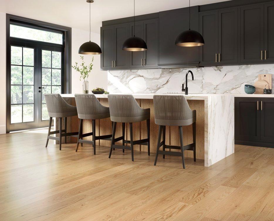 Smooth hardwood floors offer a traditional look that is a versatile choice for any space. The smooth finish captures the character and grain variation of the unique wood species.