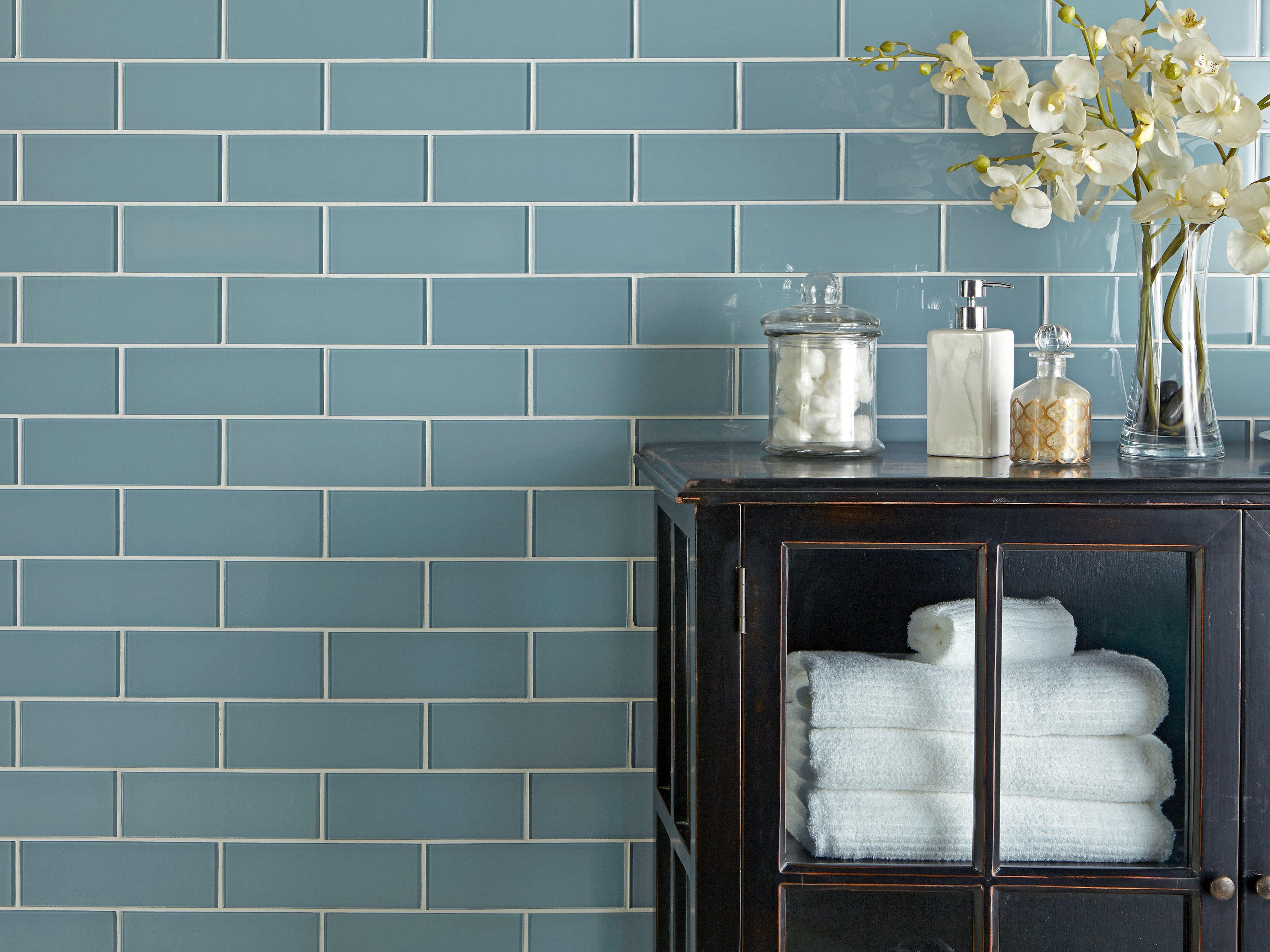 Refresh your home's design with this 3 x 9 rectangle Spa Blue Shiny Glass Tile in blue.