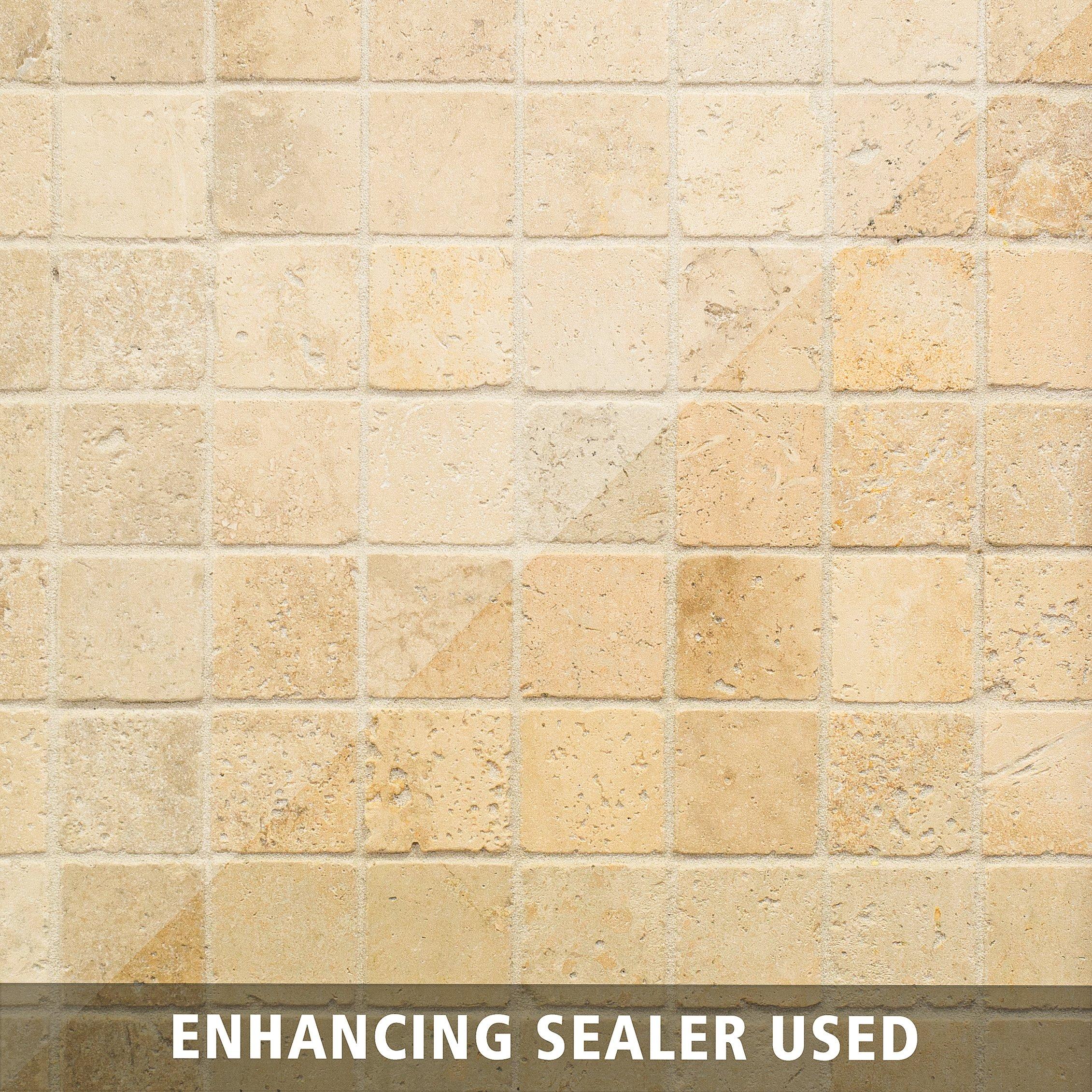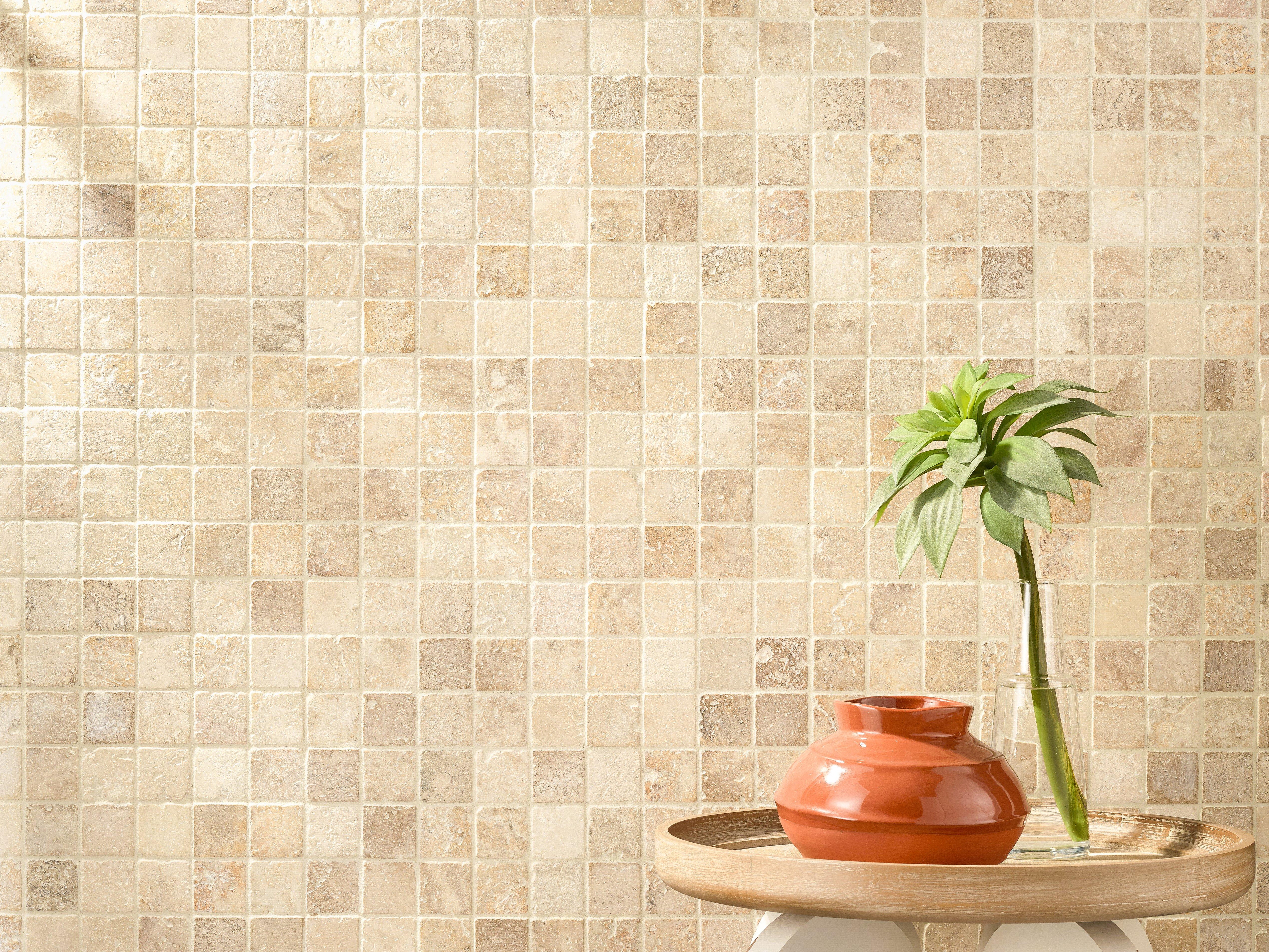 Accent the look of your home with this 12 x 12 square Country Beige Travertine Mosaic. The beige color gives a nice touch to any room.