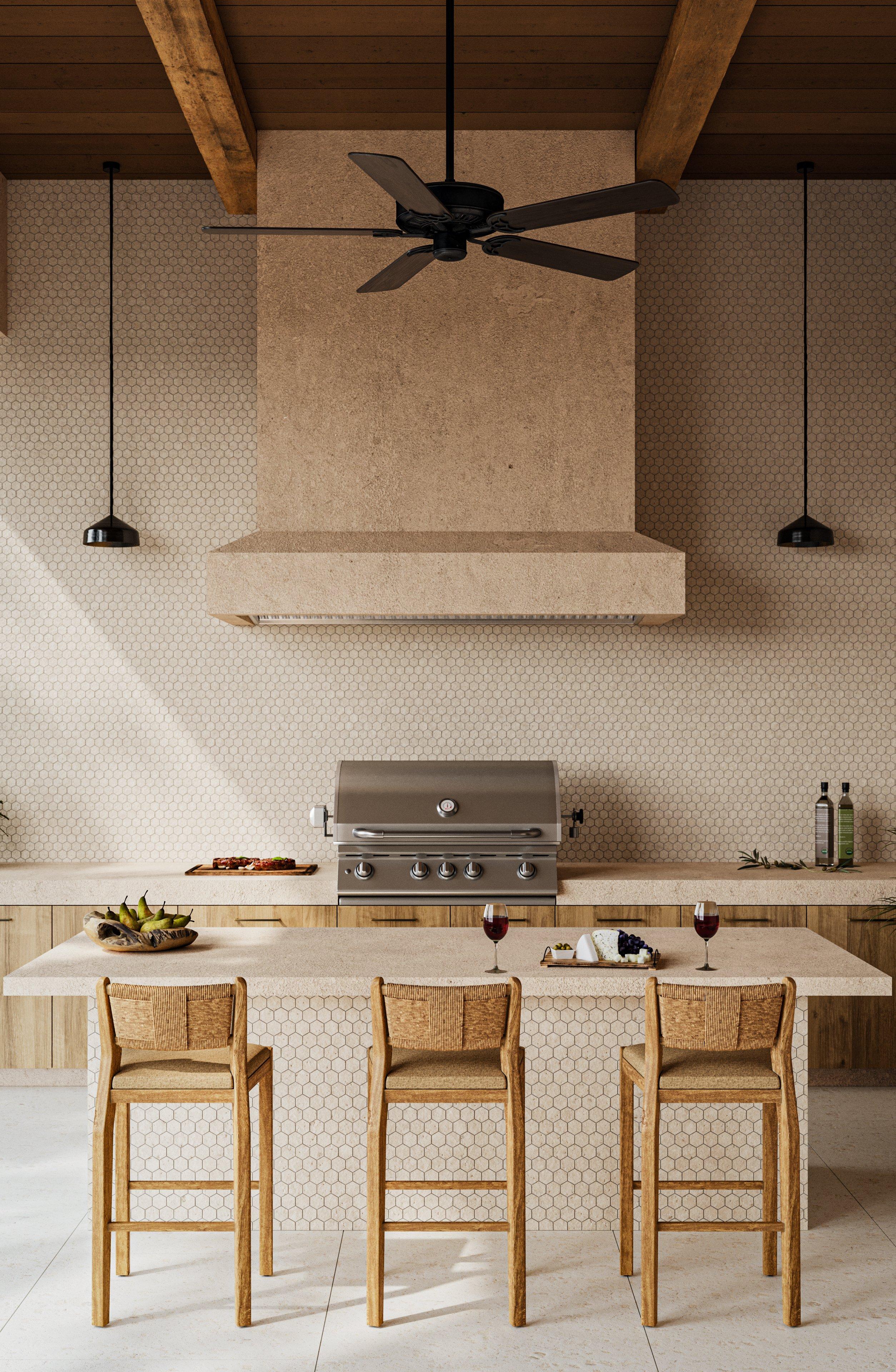 Natural stone's ageless beauty is highlighted with brushed finish tiles, giving the surface of the tile a textured look.