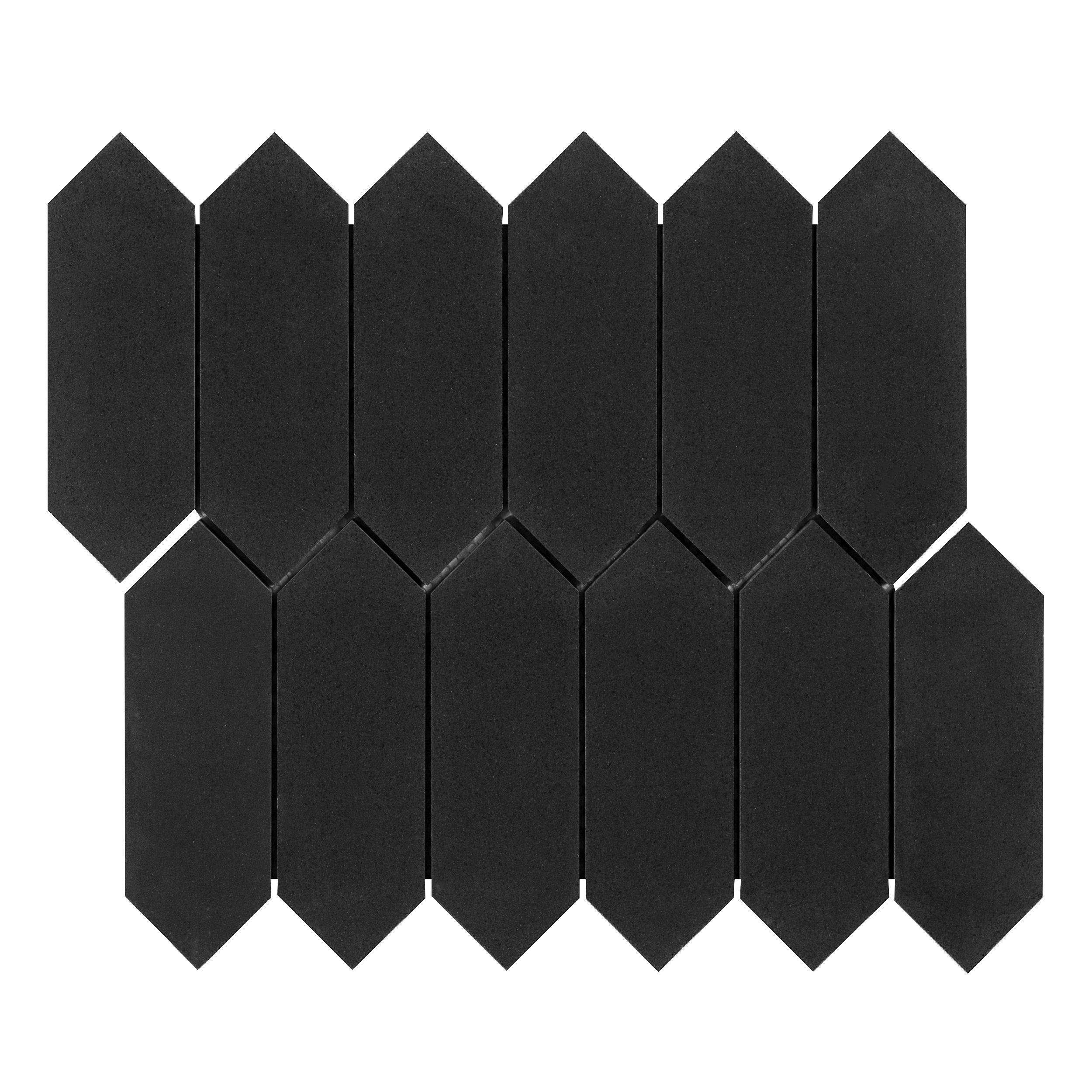 Accent the look of your home with this 12 x 12 picket Jet Black Basalt Picket Limestone Mosaic. The black color gives a nice touch to any room.