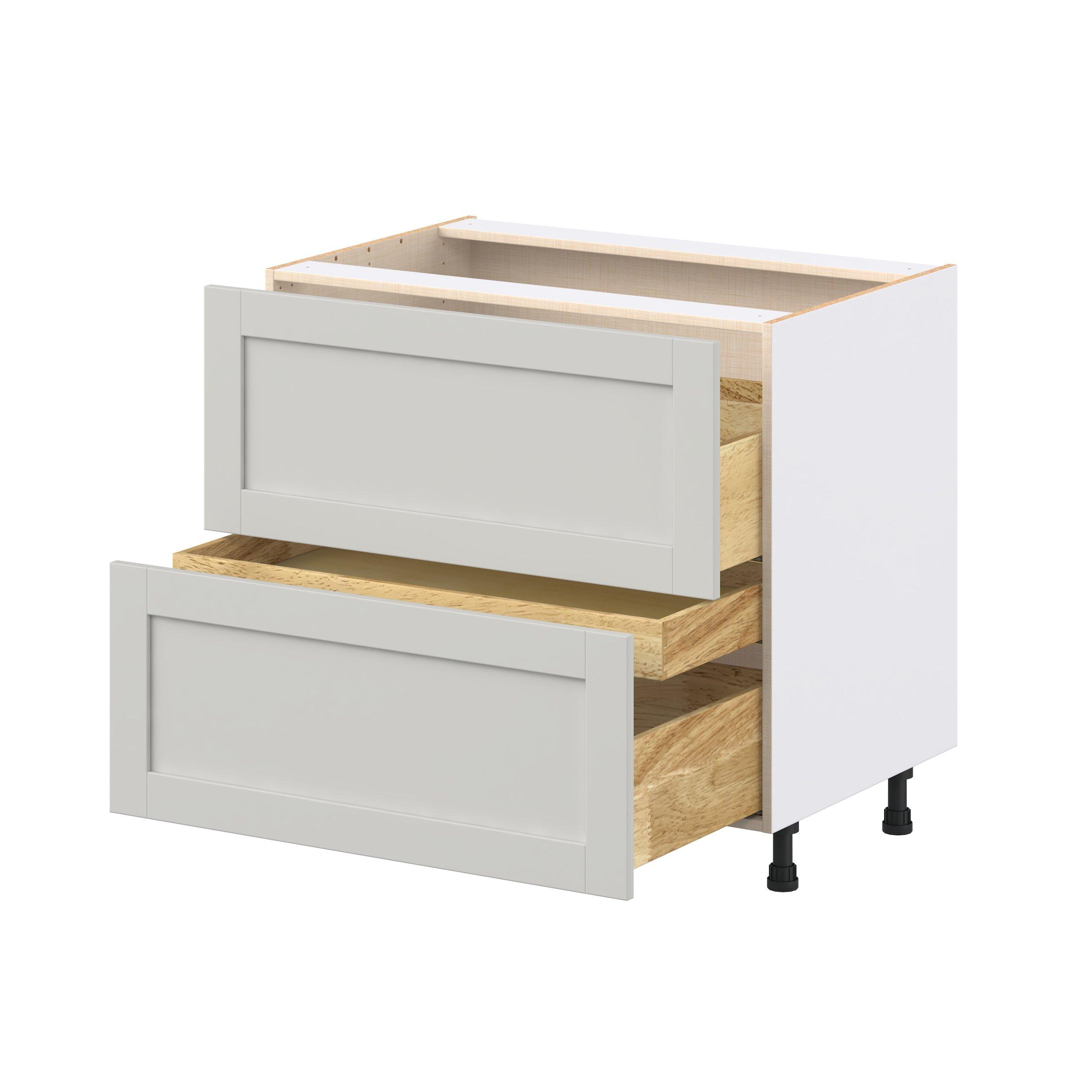Enhance your home with the timeless beauty of Summerhill classic shaker cabinets, available in fresh bright white and neutral light gray colors. Crafted from one-piece MDF Studio Design Collection Summerhill 36 in. Light Gray Cooktop Base Cabinet is designed to resist hairline cracks while the easy-to-clean finish stands up to stains and moisture. Featuring 5-piece doors and dovetail drawer joints, these cabinets offer durability and elegance. This collection combines style with everyday storage solutions.