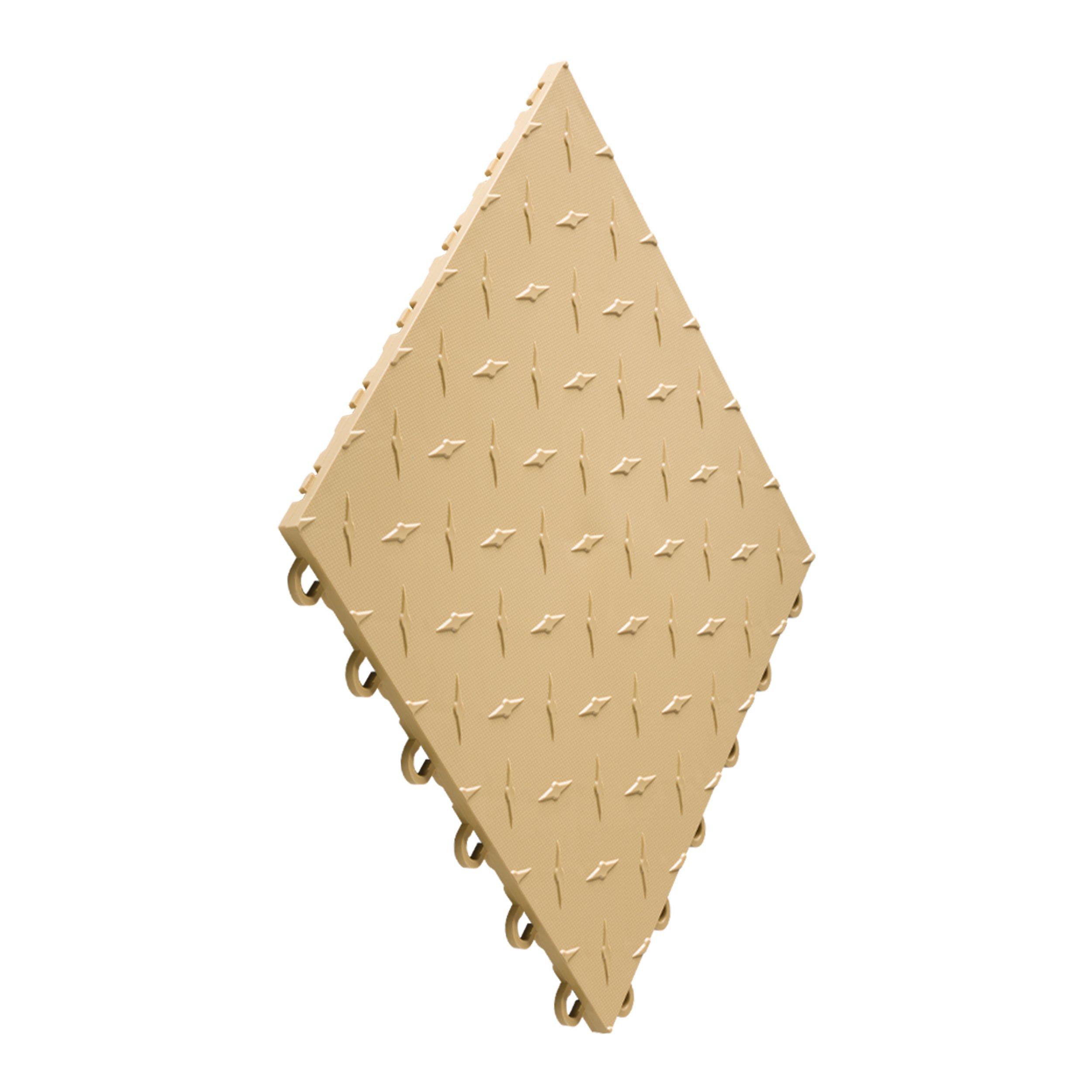 Brighten up your space with Swisstrax Diamondtrax Home garage flooring tiles. Manufactured from high-density polypropylene material, the tiles are durable and easy to maintain. It is constructed to withstand household and automotive fluids, maximizing airflow and drainage with its attractive diamond design. Boasting a 24-connection point interlocking tile system, tiles are easy to install, in a matter of hours. With many color options available, designs are customizable, fitting virtually any garage space.