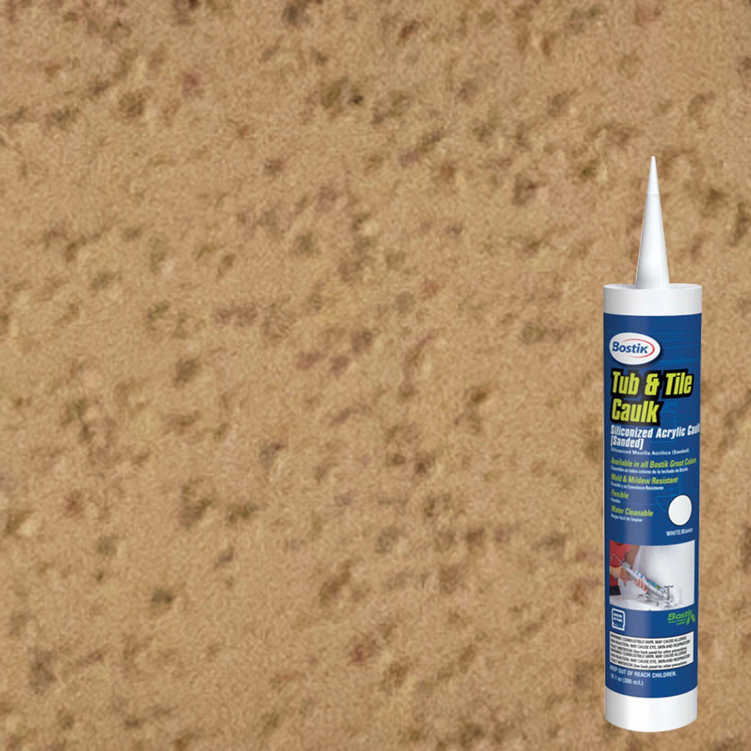1 Year LimitedBostik Antique White Tub and Tile Sanded Caulk is siliconized acrylic caulk provides a flexible seal that bonds to most common household surfaces. Ideal for filling joints where tiles abut dissimilar surfaces. Tub and Tile Caulks match the color and texture of Bostik grout colors. Use around bathtub, showers, countertops, basins and many other areas. KEY FEATURES • For gaps up to 1/2" (12mm) • For filling joints where tile meets dissimilar surfaces. • For caulking around sinks, tubs, showers, countertops, ceramic tile and natural stone. • Ideal flexible joint between horizontal and vertical surfaces. Prior to beginning your project, please consult the manufacturer's installation guide