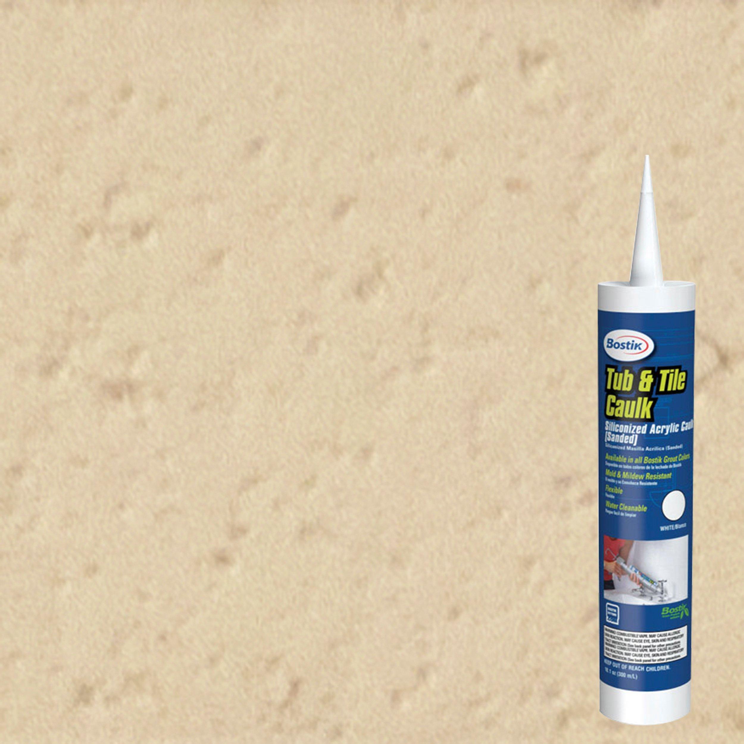 Bostik White Tub and Tile Sanded Caulk is siliconized acrylic caulk provides a flexible seal that bonds to most common household surfaces. Ideal for filling joints where tiles abut dissimilar surfaces. Tub and Tile Caulks match the color and texture of Bostik grout colors. Use around bathtub, showers, countertops, basins and many other areas. KEY FEATURES • For gaps up to 1/2" (12mm) • For filling joints where tile meets dissimilar surfaces. • For caulking around sinks, tubs, showers, countertops, ceramic tile and natural stone. • Ideal flexible joint between horizontal and vertical surfaces. Prior to beginning your project, please consult the manufacturer's installation guide