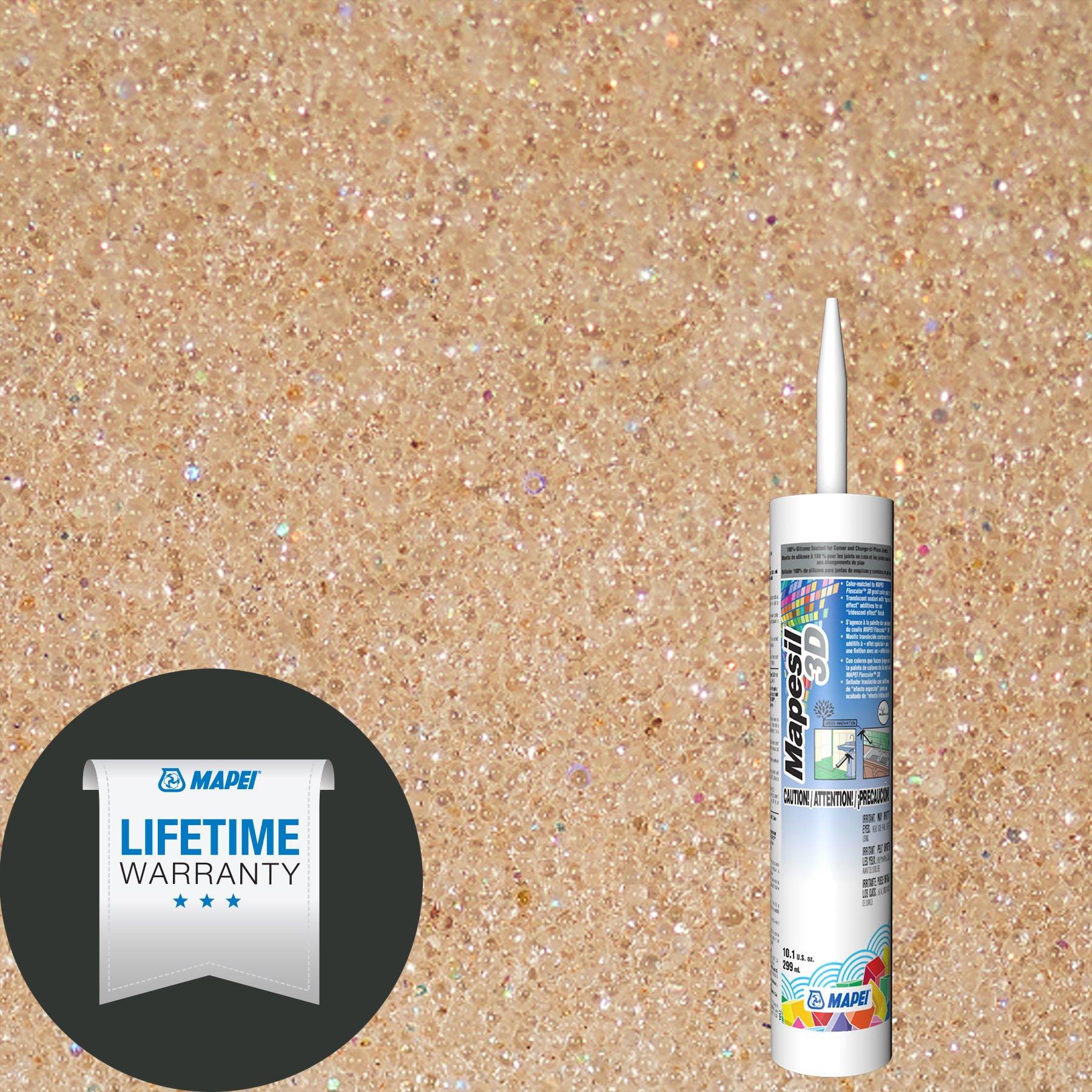Lifetime LimitedMapei 207 Champagne Bubbles Mapesil 3D Silicone Caulk is a professional-grade, 100%-silicone sealant for use on multiple substrates. This sealant is specifically formulated to offer direct color matches to MAPEI Flexcolor ™ 3D grout. FEATURES AND BENEFITS • Color-matched to MAPEI Flexcolor 3D grout • Translucent sealant with “special effect” additives for an “iridescent effect” finish • 100%-silicone for use in interior, exterior, wet and dry installations from Res 1 to 6 and Com 1 to 6 as detailed per TCNA Environmental Classifications • Excellent elongation and flexibility for use in both change-of-plane and joint applications in tile or stonework • Incorporates BioBlock® technology for mold and mildew resistance WHERE TO USE • Interior/exterior residential and commercial installations from Res 1 to 6 and Com 1 to 6 per TCNA Environmental Classifications • As a flexible barrier/filler between horizontal/vertical surfaces and any other changes of plane • Expansion joints in non-traffic, normal-traffic and heavy-traffic areas • Countertops, vanities, sinks, bathtubs, showers, steam rooms, pools, spas, backsplashes and fixtures Prior to beginning your project, please consult the manufacturer's installation guide
