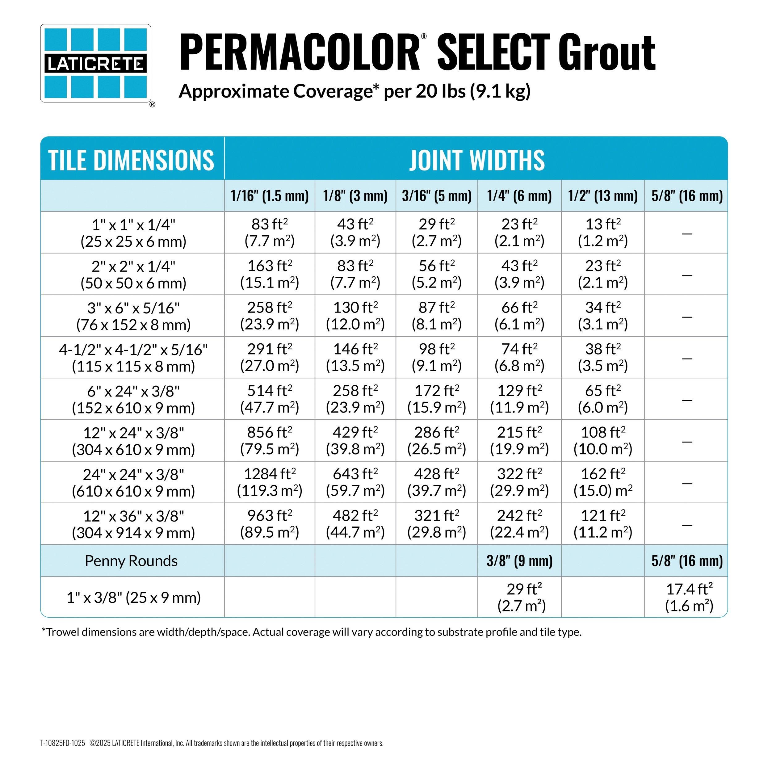 Laticrete 17 Permacolor Select Marble Beige Grout is a high-performance cementitious tile grout designed for strength, durability, and long-lasting color. With its improved formula, it’s engineered to provide denser, stronger grout joints while resisting wear and staining. Perfect for both residential and commercial floors and walls, it’s built to perform wherever tile is installed.