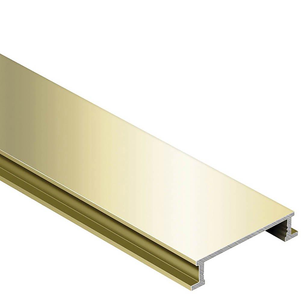 5 Year LimitedSchluter Designline 1in. Border Trim 1/4in. Aluminum Polish Brass is a finishing and edge-protection profile for the outside corners of tiled surfaces on walls. The vertical wall section of the profile provides a decorative finish and protects adjacent tiles. Other applications include transitions for dado coverings such as carpet, natural stone, or cold-cured resin coatings.