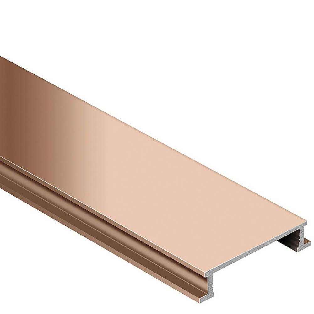 Wall OnlySchluter Designline 1in. Border Trim 1/4in. Aluminum Polish Copper is a finishing and edge-protection profile for the outside corners of tiled surfaces on walls. The vertical wall section of the profile provides a decorative finish and protects adjacent tiles. Other applications include transitions for dado coverings such as carpet, natural stone, or cold-cured resin coatings.
