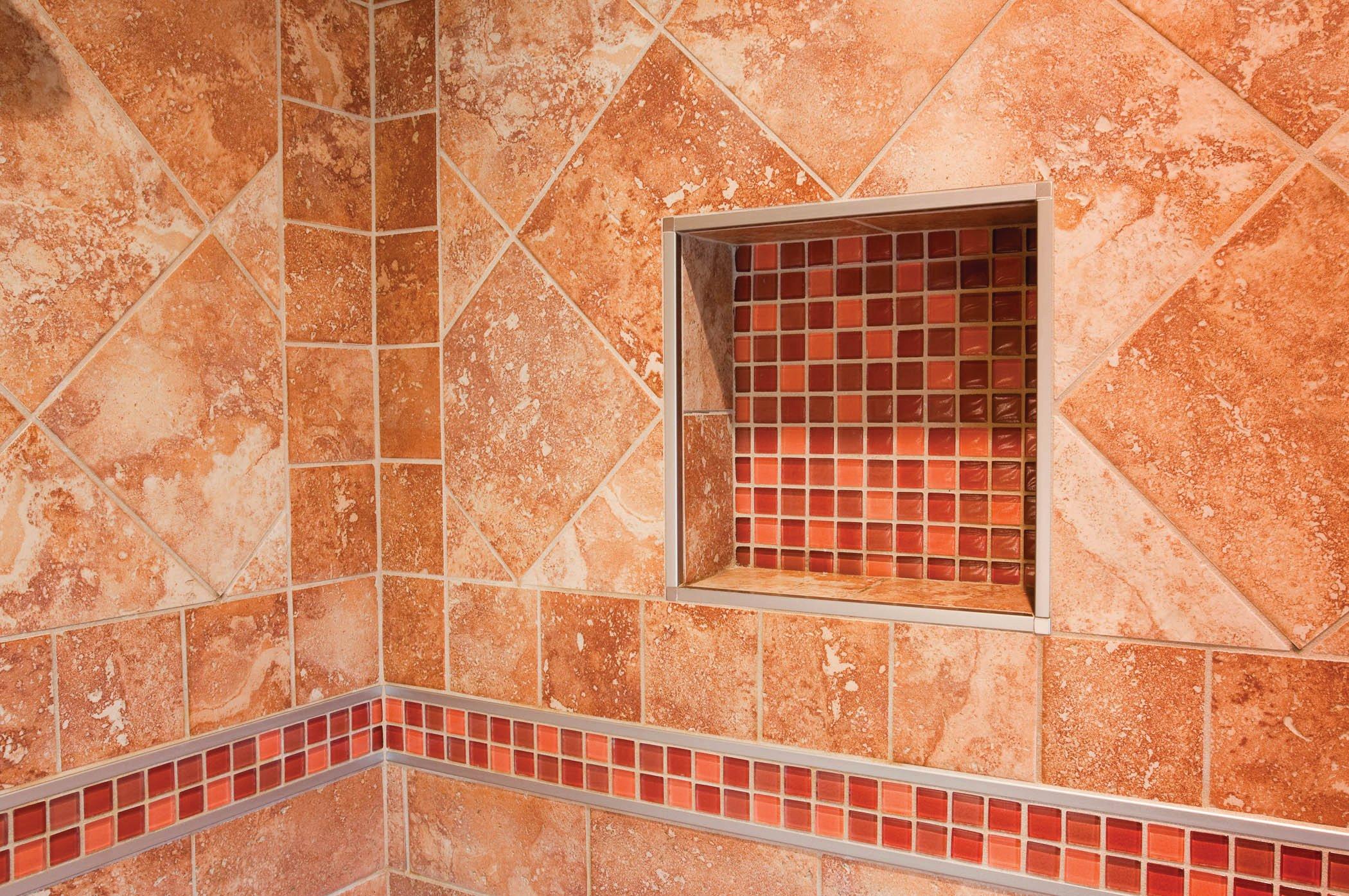 Schluter®-DILEX-EKE features trapezoid-perforated anchoring legs, made of recycled rigid PVC, which are secured in the mortar bond coat. The profile separates tile fields that meet at inside corners and accommodates movement via the 3/16" (5 mm)-wide soft chlorinated polyethylene (CPE) movement zone, which forms the visible surface and creates a discrete, uniform joint. DILEX-EKE prevents surface water penetration and features a tile pocket that hides cut tile edges. In addition, it prevents sound bridges, making it ideal for floor/wall transitions in sound-rated floors.