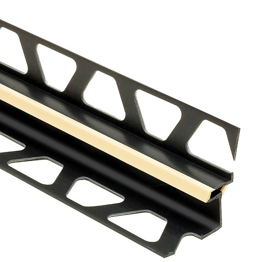 Schluter®-DILEX-EKE features trapezoid-perforated anchoring legs, made of recycled rigid PVC, which are secured in the mortar bond coat. The profile separates tile fields that meet at inside corners and accommodates movement via the 3/16" (5 mm)-wide soft chlorinated polyethylene (CPE) movement zone, which forms the visible surface and creates a discrete, uniform joint. DILEX-EKE prevents surface water penetration and features a tile pocket that hides cut tile edges. In addition, it prevents sound bridges, making it ideal for floor/wall transitions in sound-rated floors.