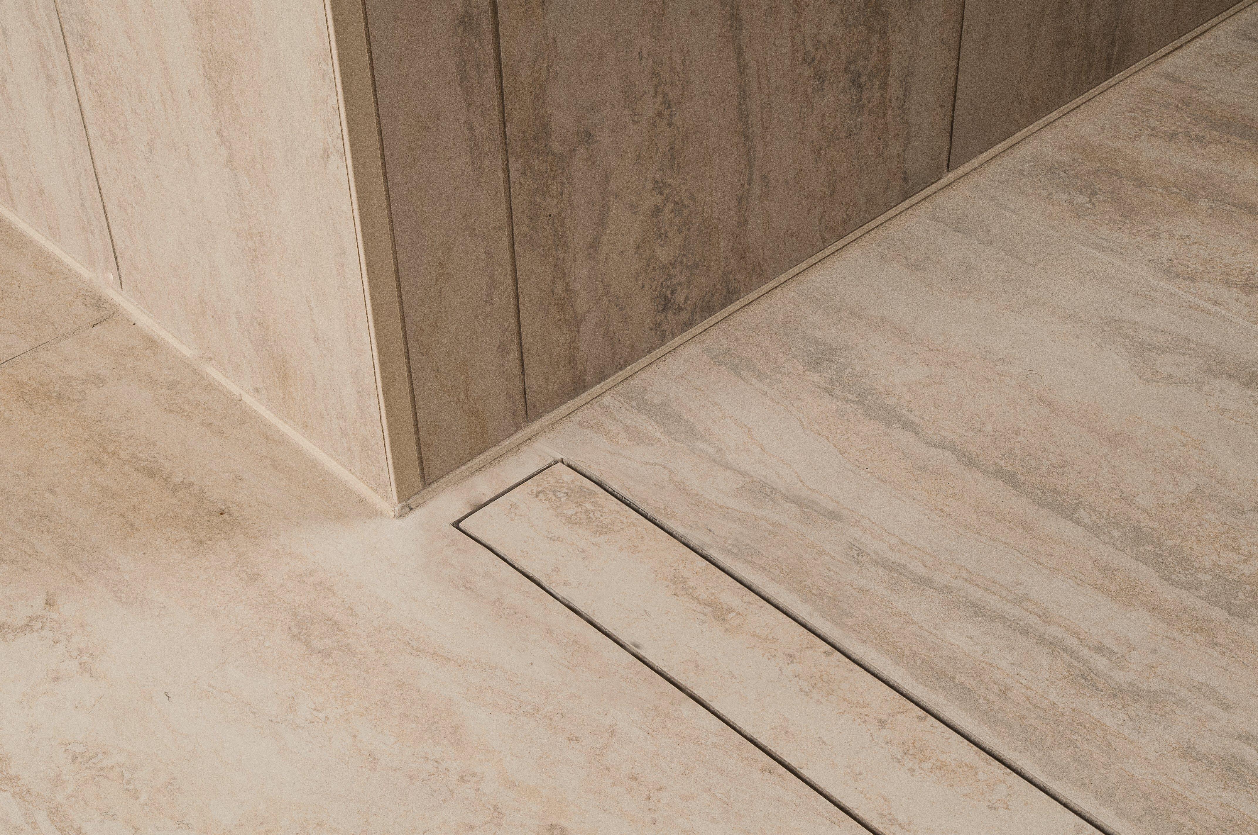 Schluter®-DILEX-EKE features trapezoid-perforated anchoring legs, made of recycled rigid PVC, which are secured in the mortar bond coat. The profile separates tile fields that meet at inside corners and accommodates movement via the 3/16" (5 mm)-wide soft chlorinated polyethylene (CPE) movement zone, which forms the visible surface and creates a discrete, uniform joint. DILEX-EKE prevents surface water penetration and features a tile pocket that hides cut tile edges. In addition, it prevents sound bridges, making it ideal for floor/wall transitions in sound-rated floors.